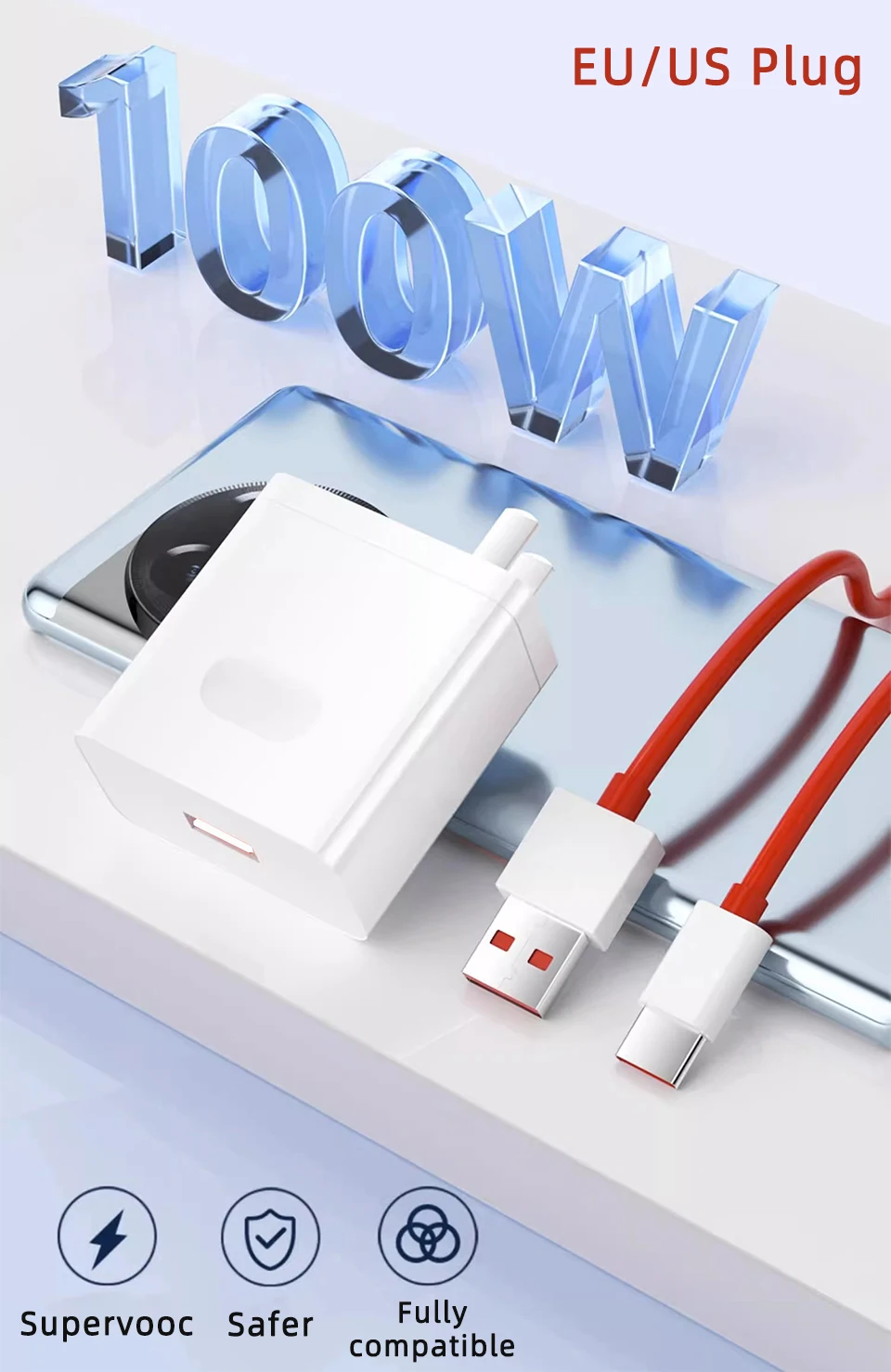 For Oneplus Original 100W SuperVOOC Charger Fast Charging Plug US EU Adapter For Oneplus 15 14 13r 12