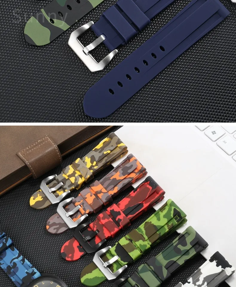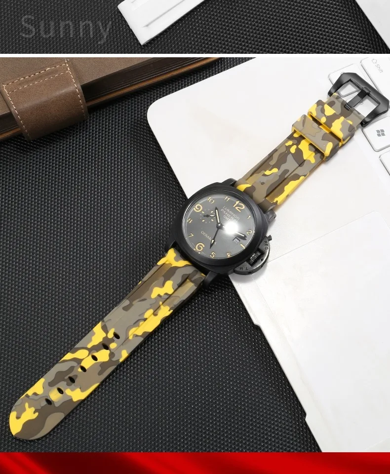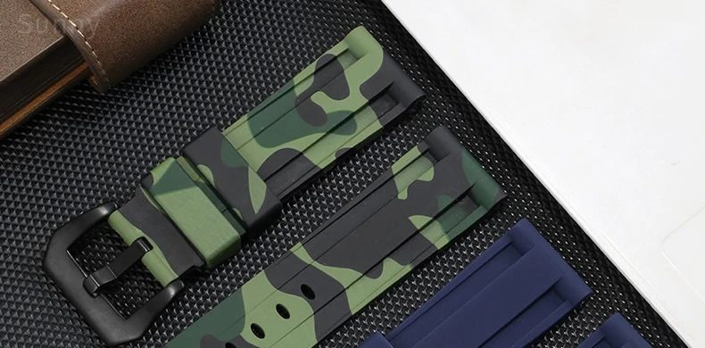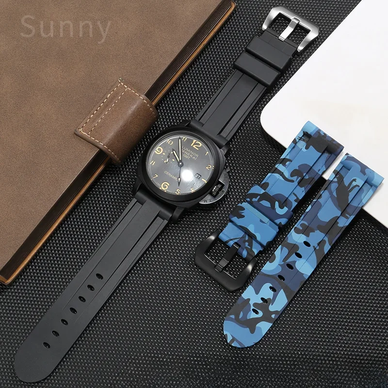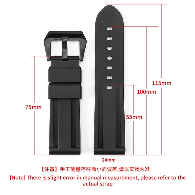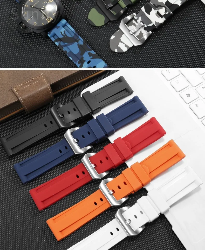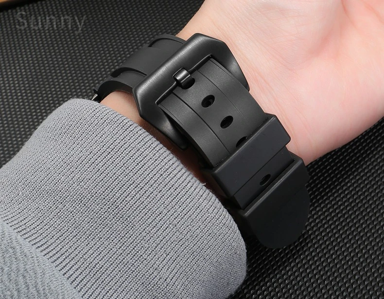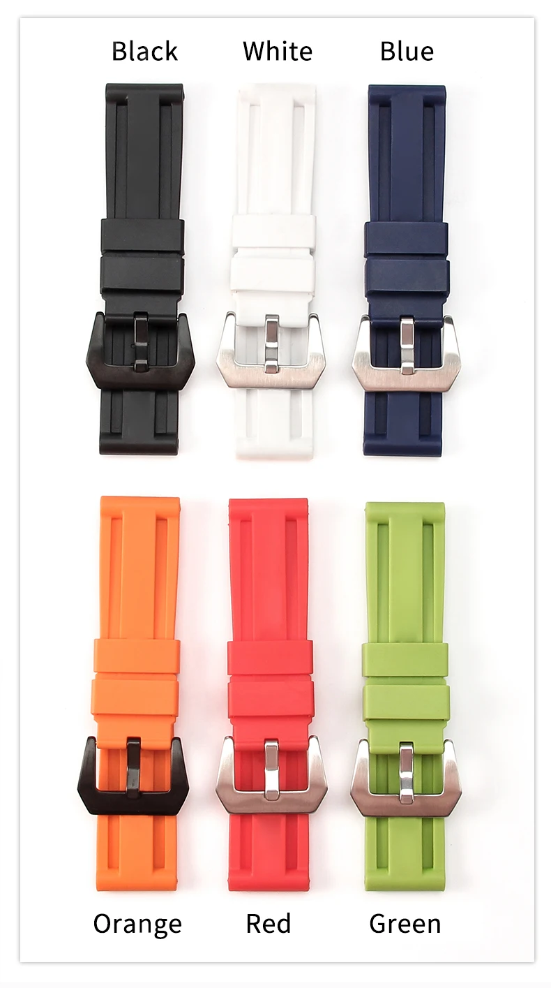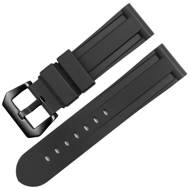 For Panerai Pure Color Natural Silicone Accessories Pam441 Diesel Suunto Solid Stainless Steel Black Buckle 24mm Watch Strap