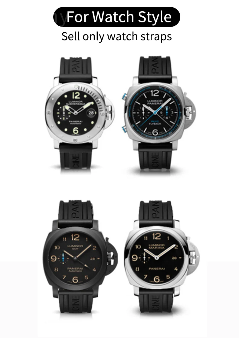 For Panerai Pure Color Natural Silicone Accessories Pam441 Diesel Suunto Solid Stainless Steel Black