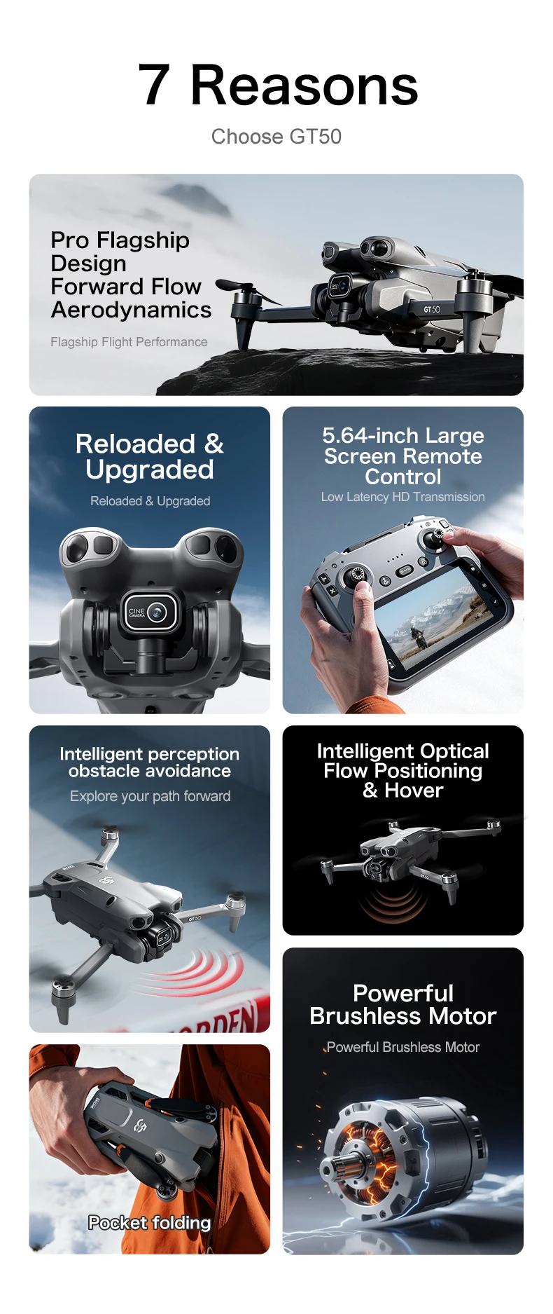 6. Gesture photography, optical flow positioning, brushless motor, ultra long battery life