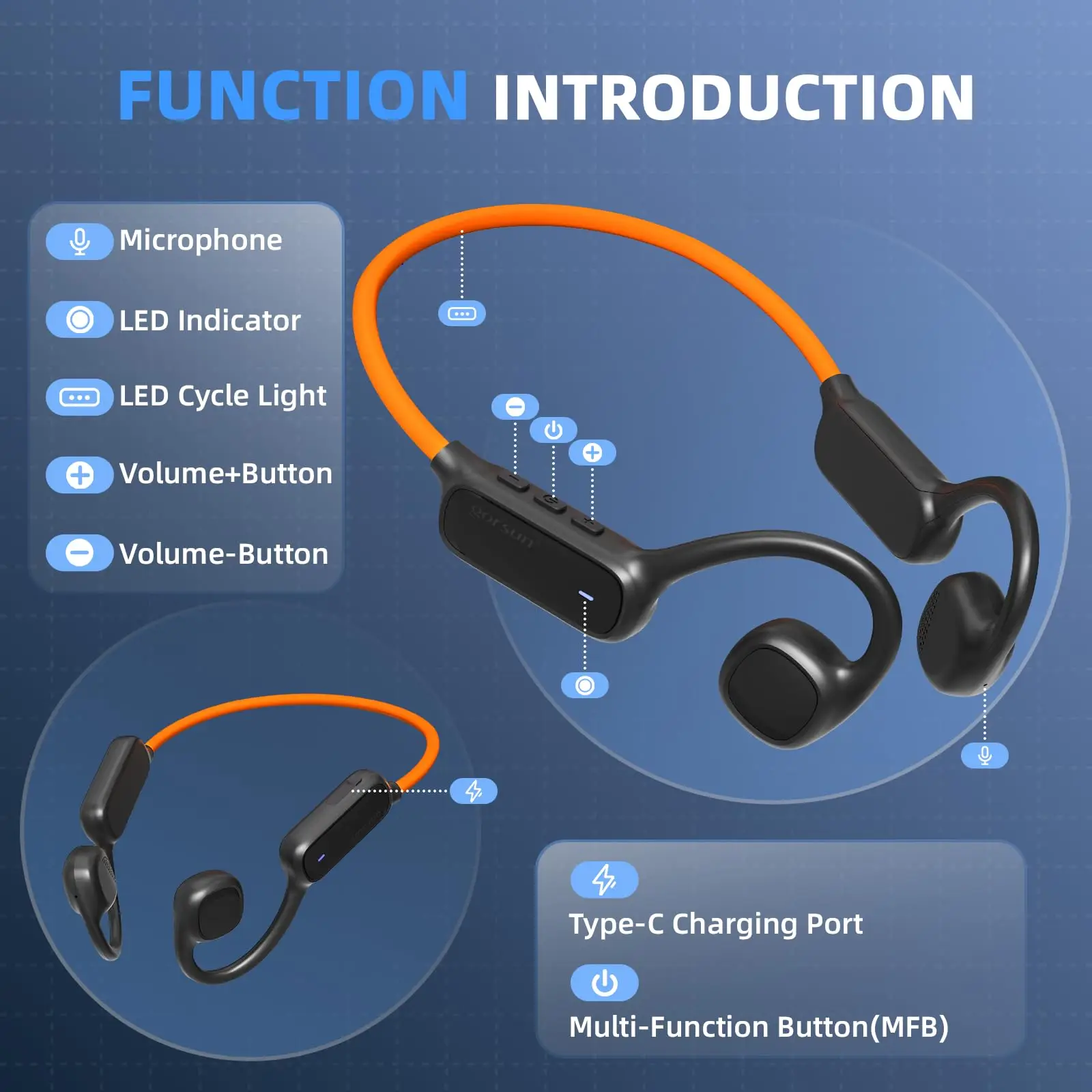 3. Easy to Use: Our open ear headphones with microphone feature a multi-function button. One click to answer and end a call, double click to redial the last number. 3 times click MFB to wake up voice assistant. Easy to adjust the volume and switch to the previous/next track.