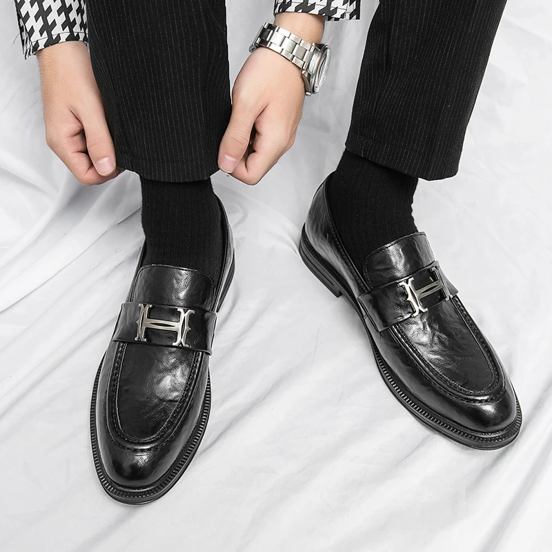 Formal Slip on Oxfords Fashion Designer Soft Wedding Italian Men's Dress Business Casual Leather Shoes for Men Loafers Footwear