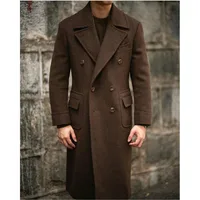 Formal Winter Brown Men Blazer Suits 1 Piece Double Breasted Notch Lapel Long Jacket Customized Male Clothing Terno Costume