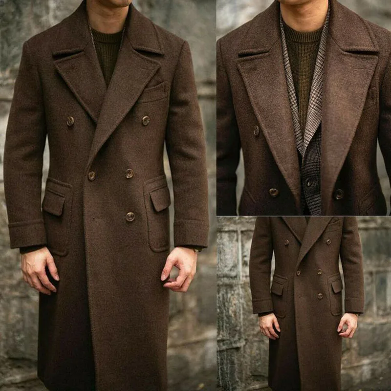 Formal Winter Brown Men Blazer Suits 1 Piece Double Breasted Notch Lapel Long Jacket Customized Male