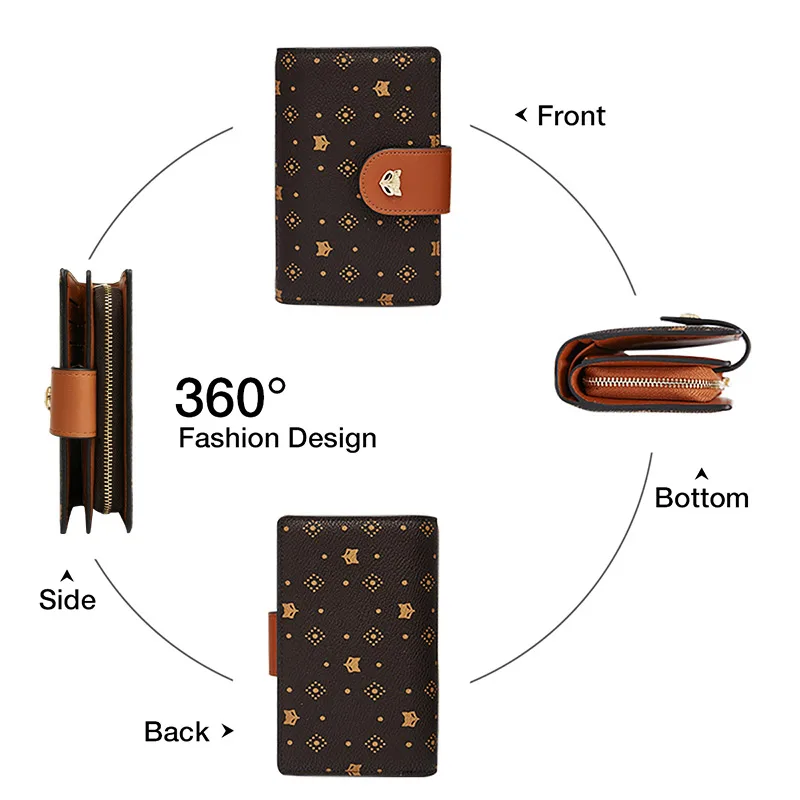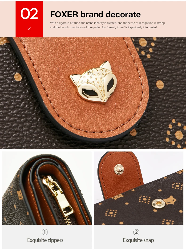 FOXER Brand Women’s Wallet 2025 Fashion Long Design Money Bag PVC Leather Card Holder Print Zipper