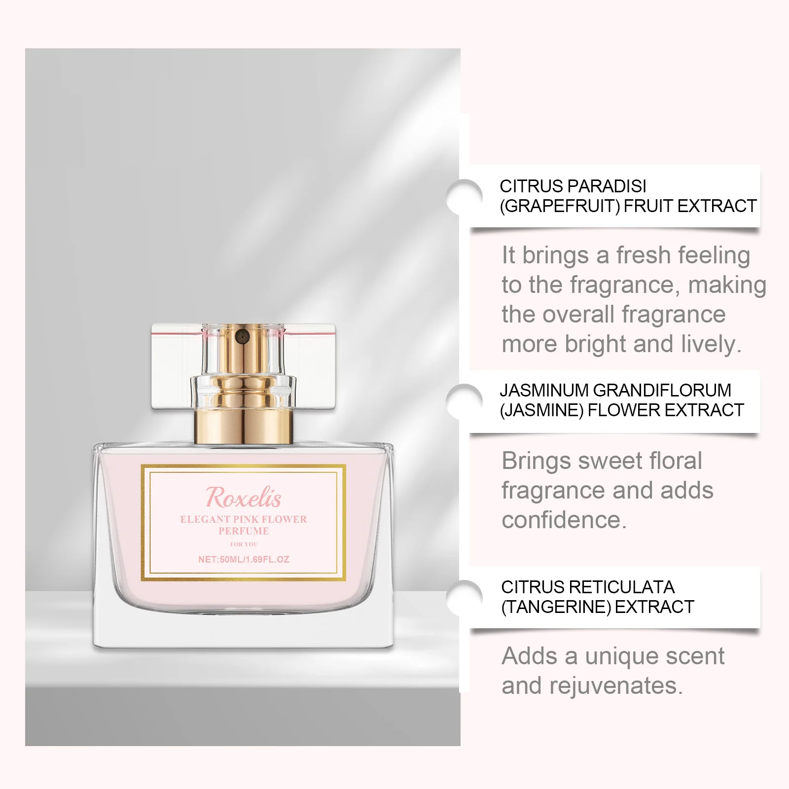 Fragrant Perfume Women Elegant Pink Flower Perfume Floral Scent Odor Remover Lighted Fragrance Portable Body Perfume for Dating
