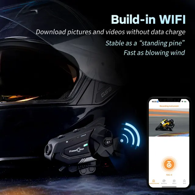 New Arrival FreedConn R1 pro Motorcycle helmet Intercom wireless Bluetooth Group 1000M 6Riders motor Headset Headphone WiFi Video Recorder
