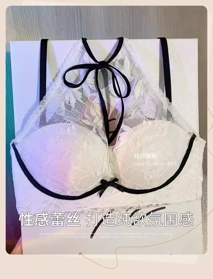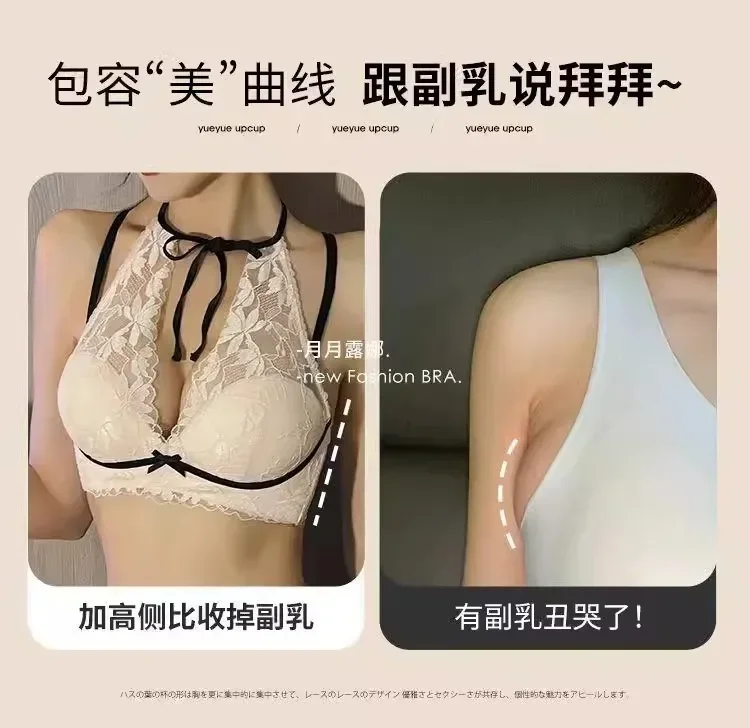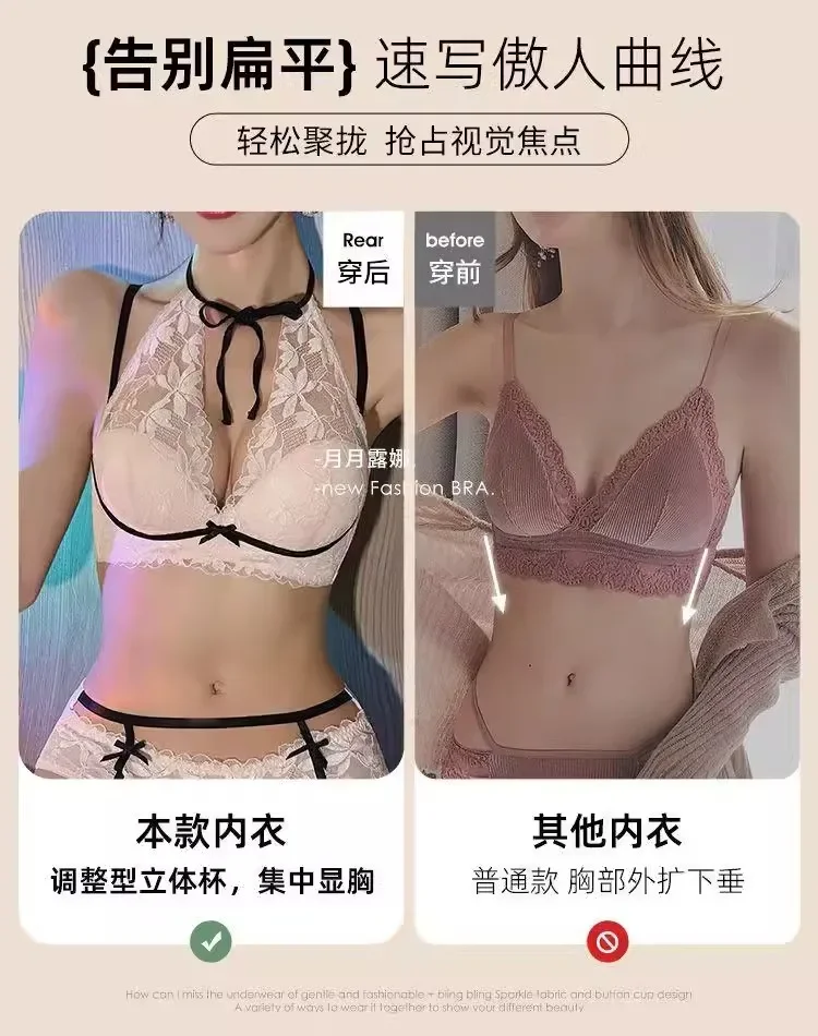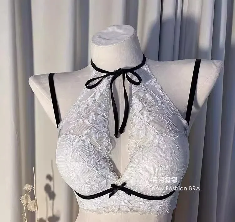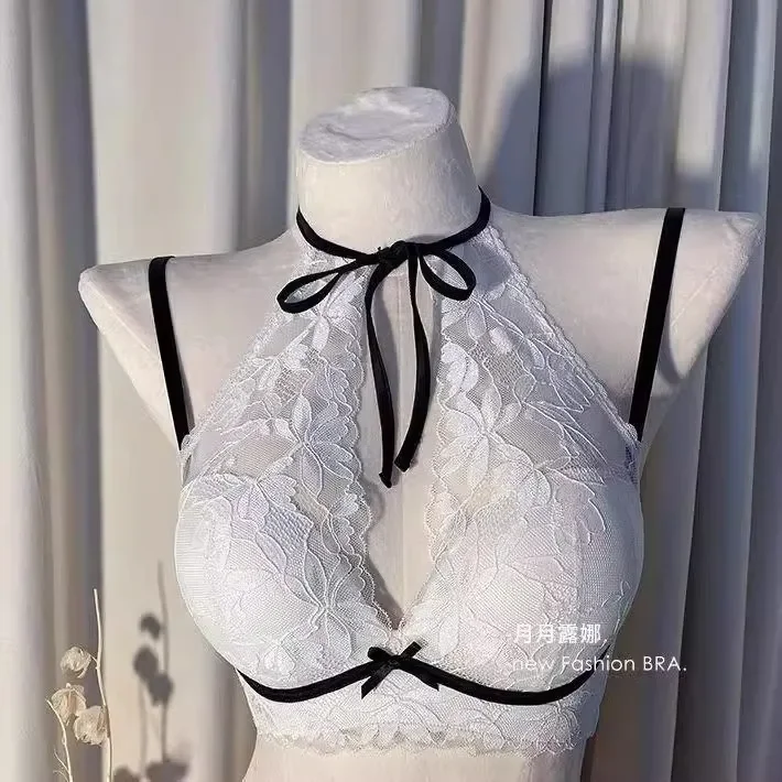 French lace halter bra for women, a sexy and beautiful back bra without a steel ring, breathable