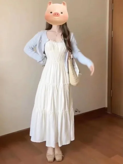 Be the first to review “French Lace Strap Dress Women Slimming Pure Sweet Milk Style White Waist Cinched Long Dress Original”