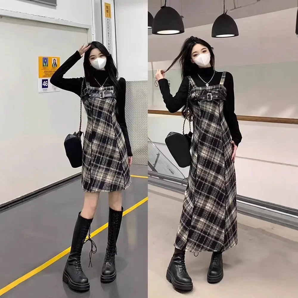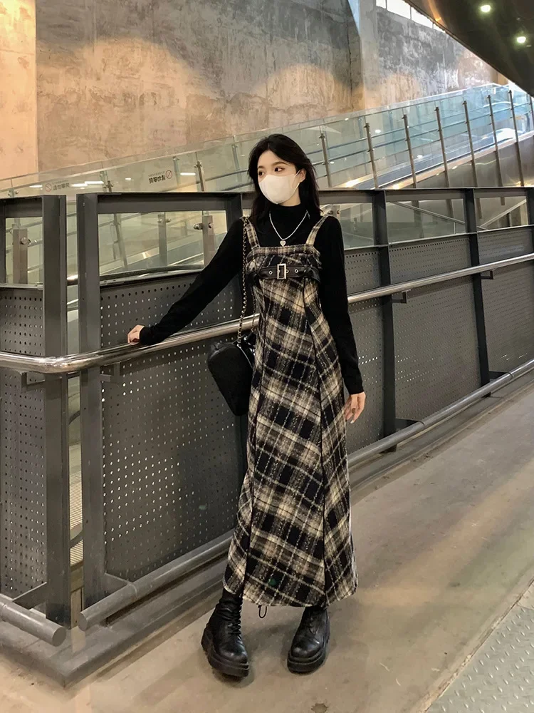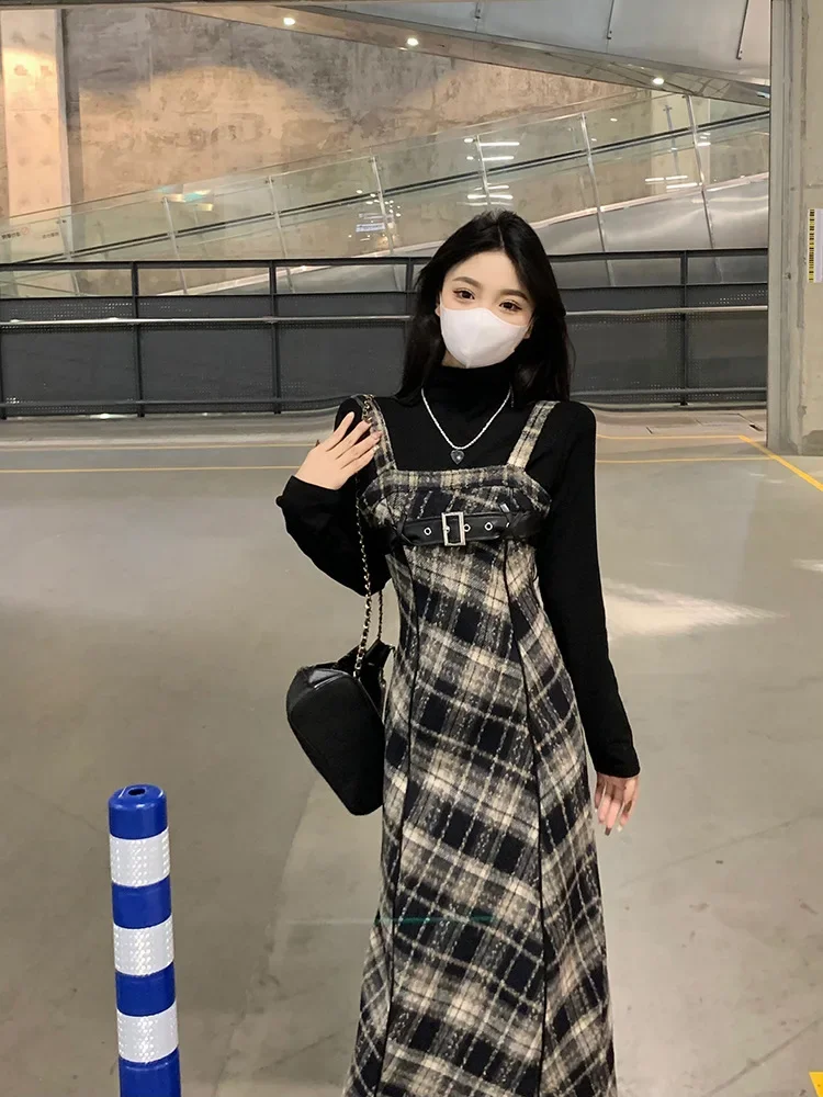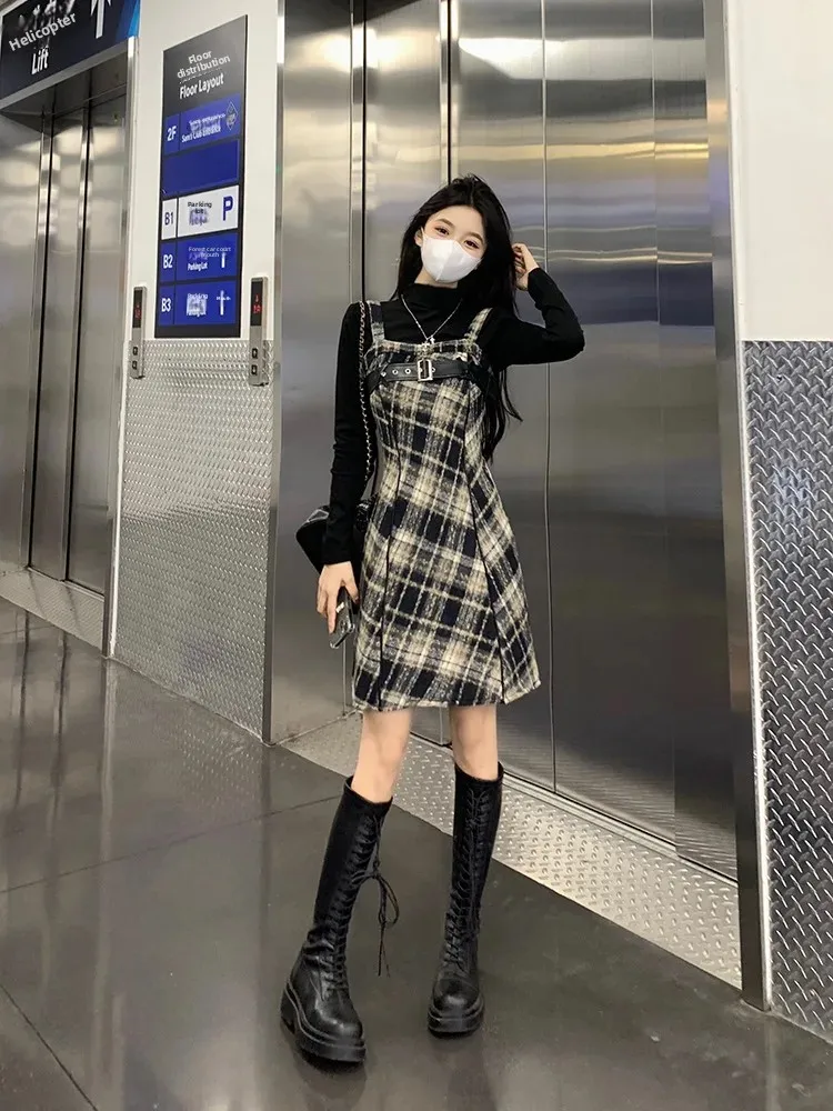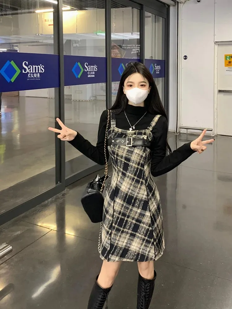 • Design & Style : Featuring a classic French plaid pattern, this dress exudes a small style fragrant Korean vibe, perfect for autumn and winter fashion.