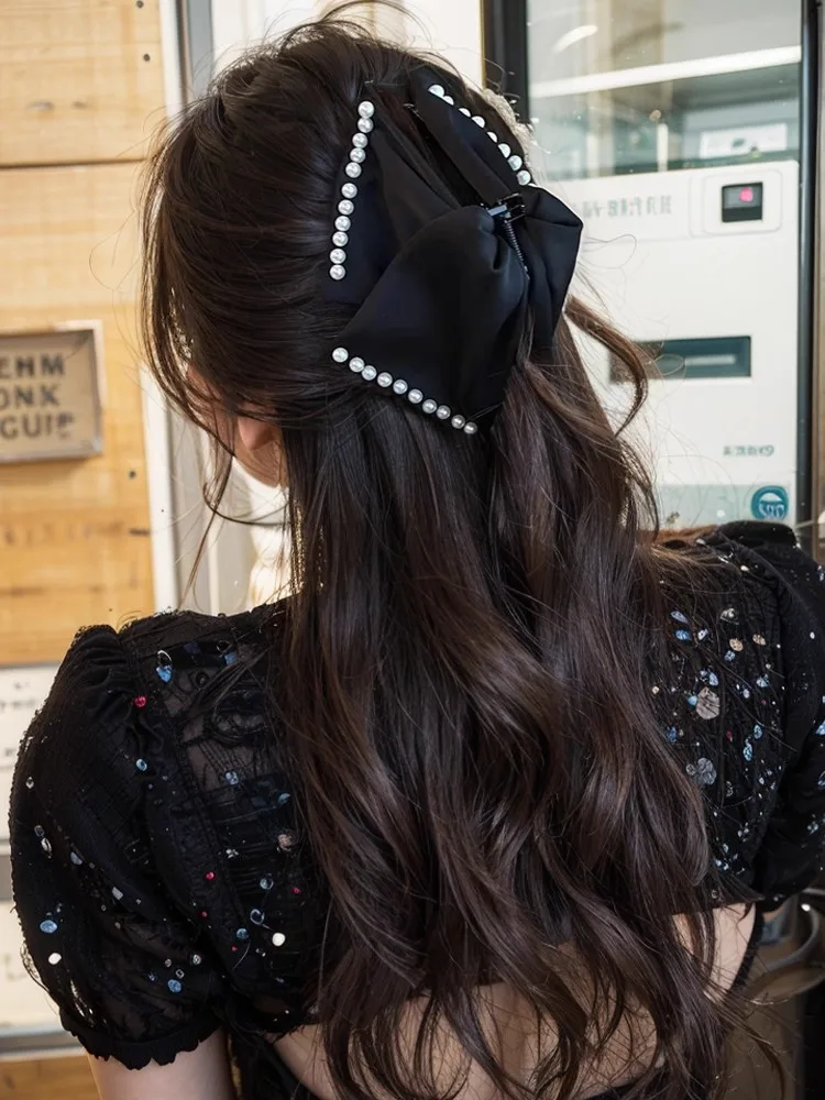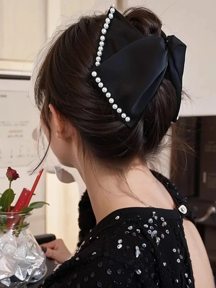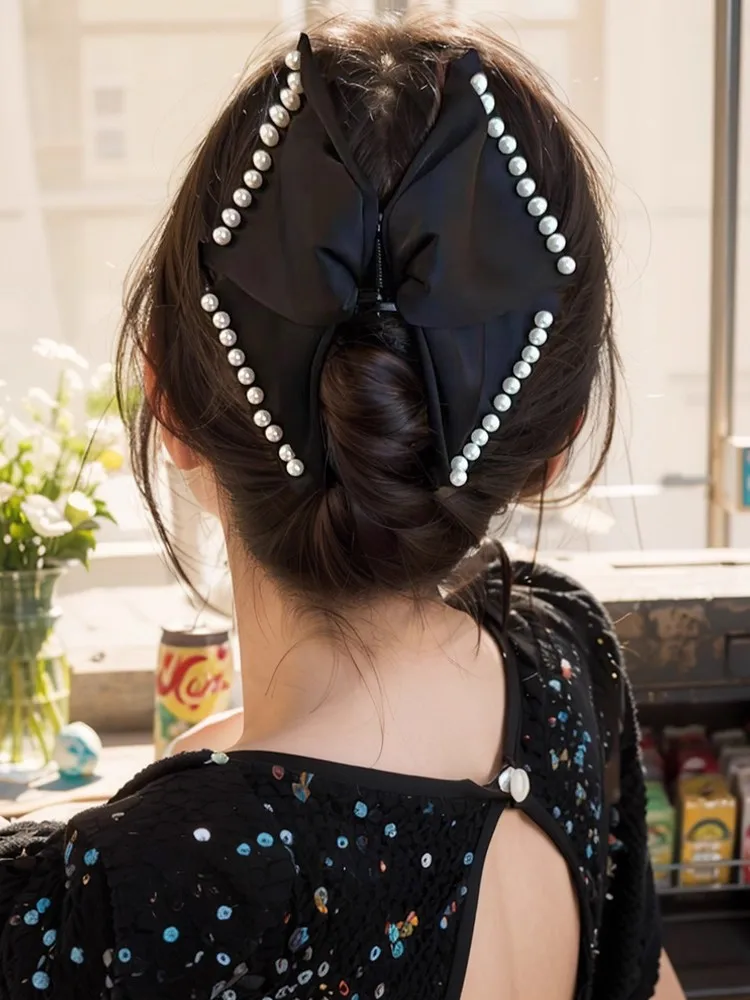The clip’s unique design, with its pearl and butterfly knot, adds a sophisticated touch to any outfit.