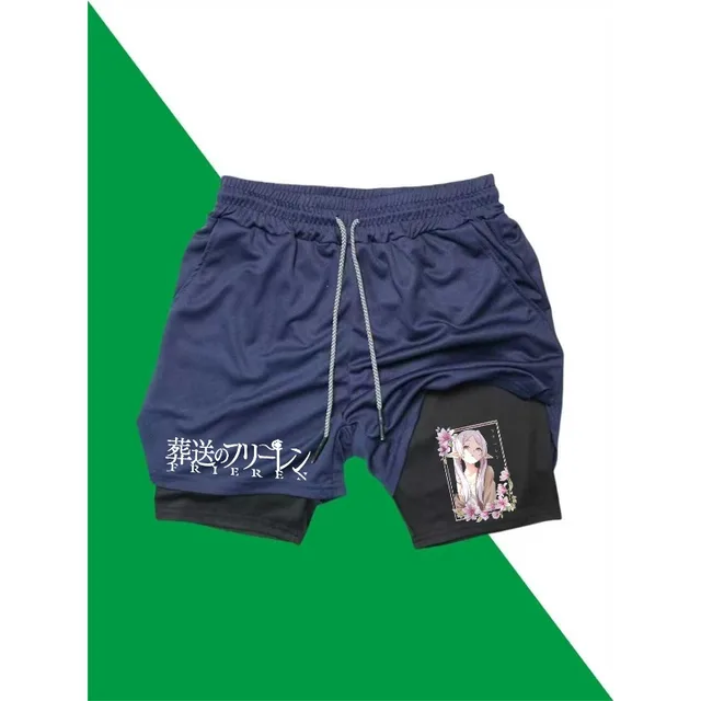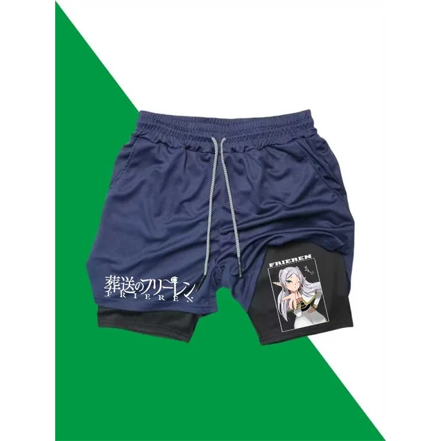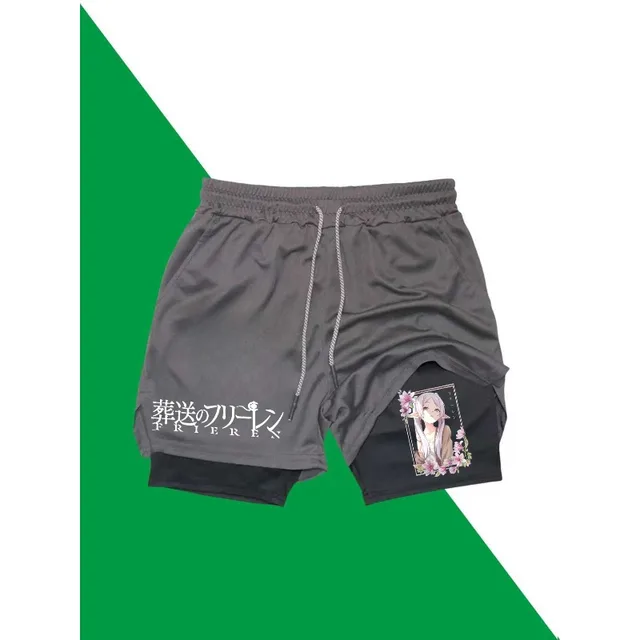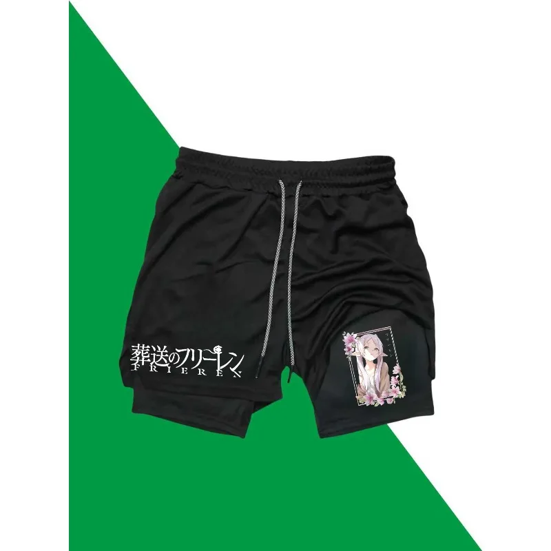 Frieren Print 2-in-1 Running Workout Shorts Men Gym Performance Compression Shorts with Phone Pocket