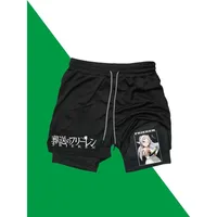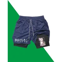 Anime Compreesion Shorts Men Gym Workout Running Athletic 2-in-1 Performance Shorts Casual with Pockets Activewear Beach Short