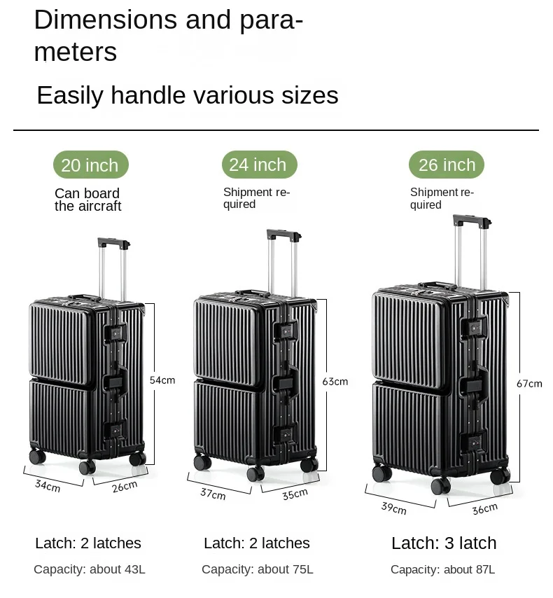 Front Opening Suitcase Aluminium Frame Large Capacity Carrier 28-inch Oversized Luggage 20 inch Trip