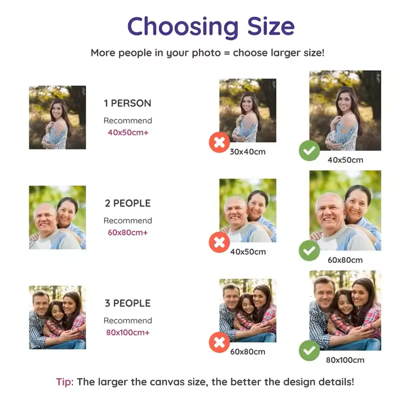 lmportant:The larger the size selection, the more detailed the results and the better the final result.