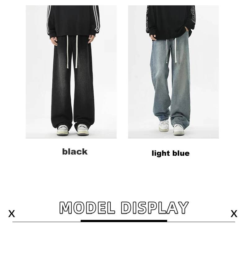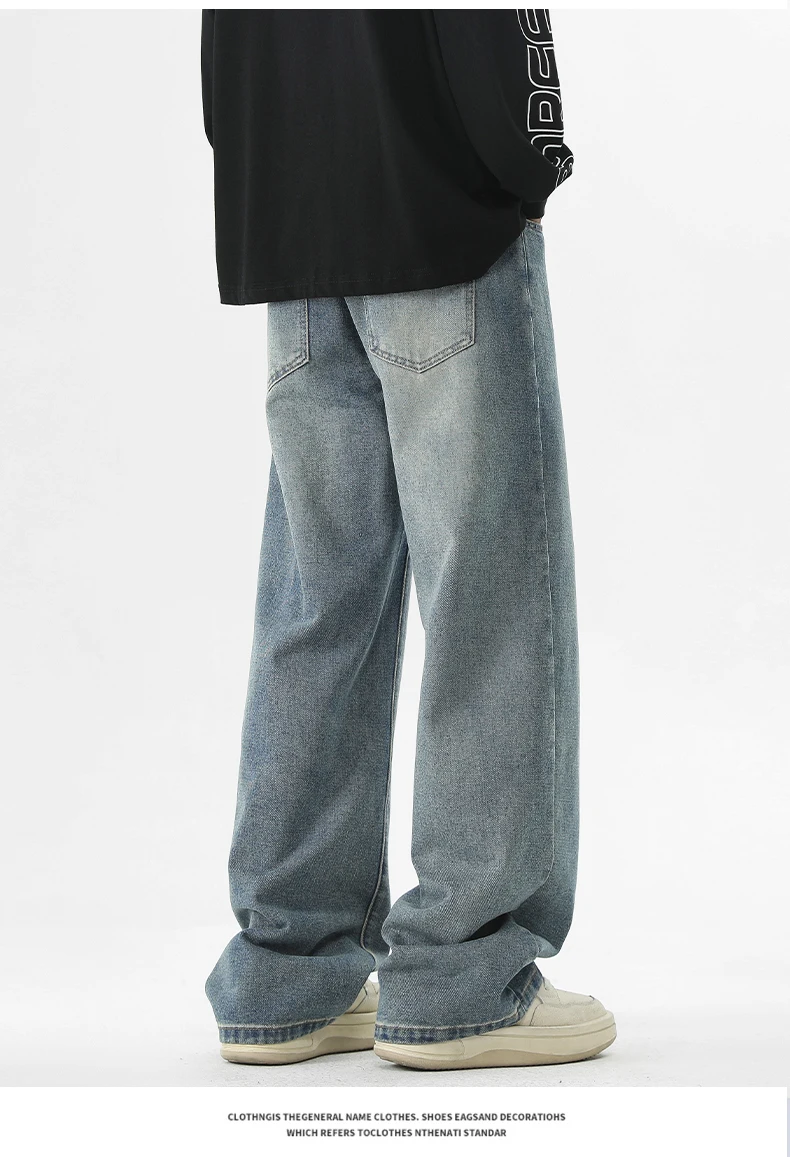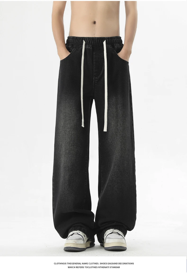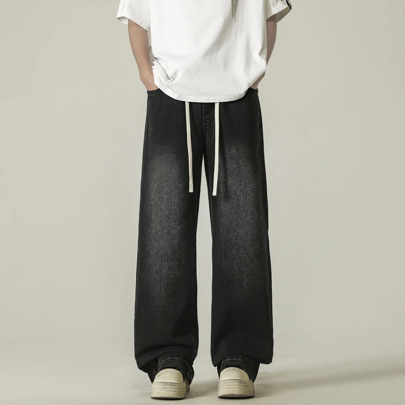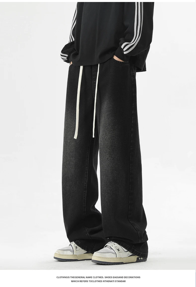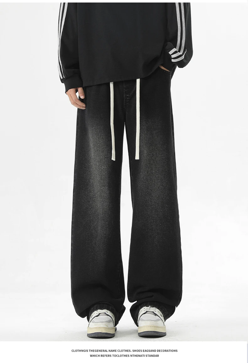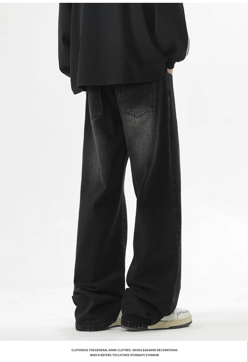full length men’s oversize y2k black big boys jeans for man washed straight leg casual loose wide