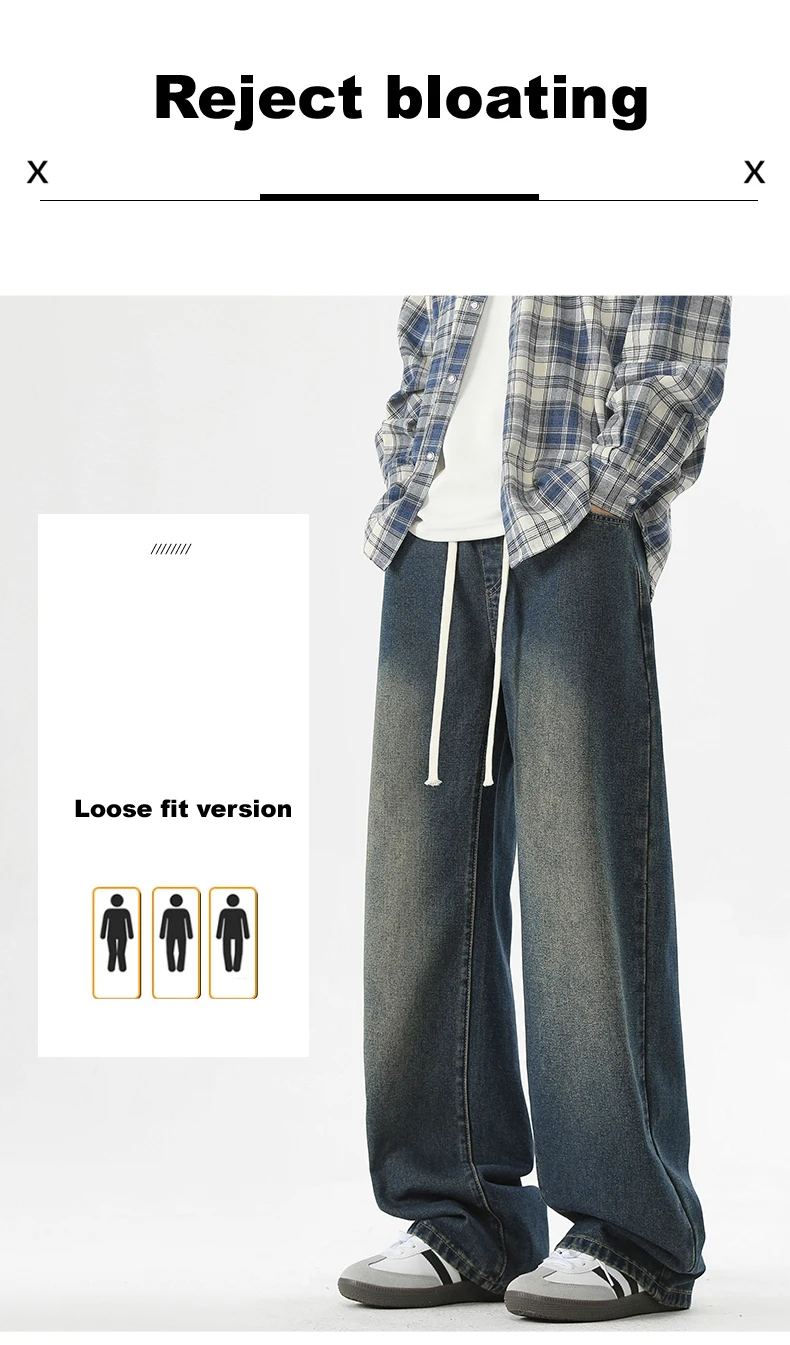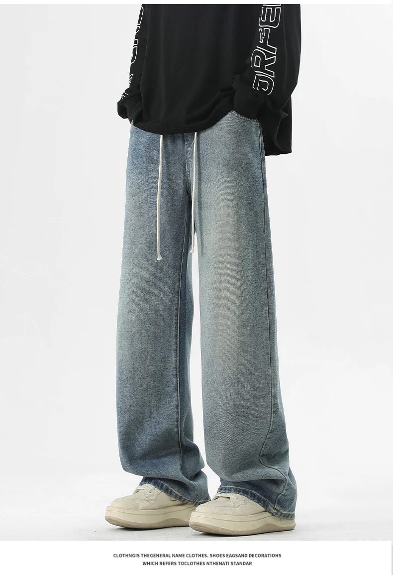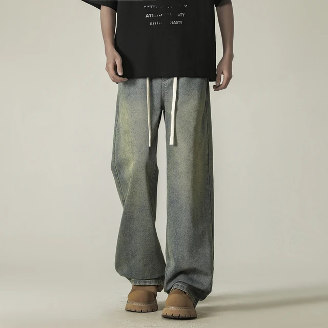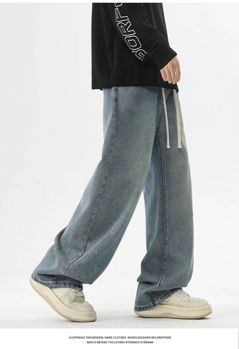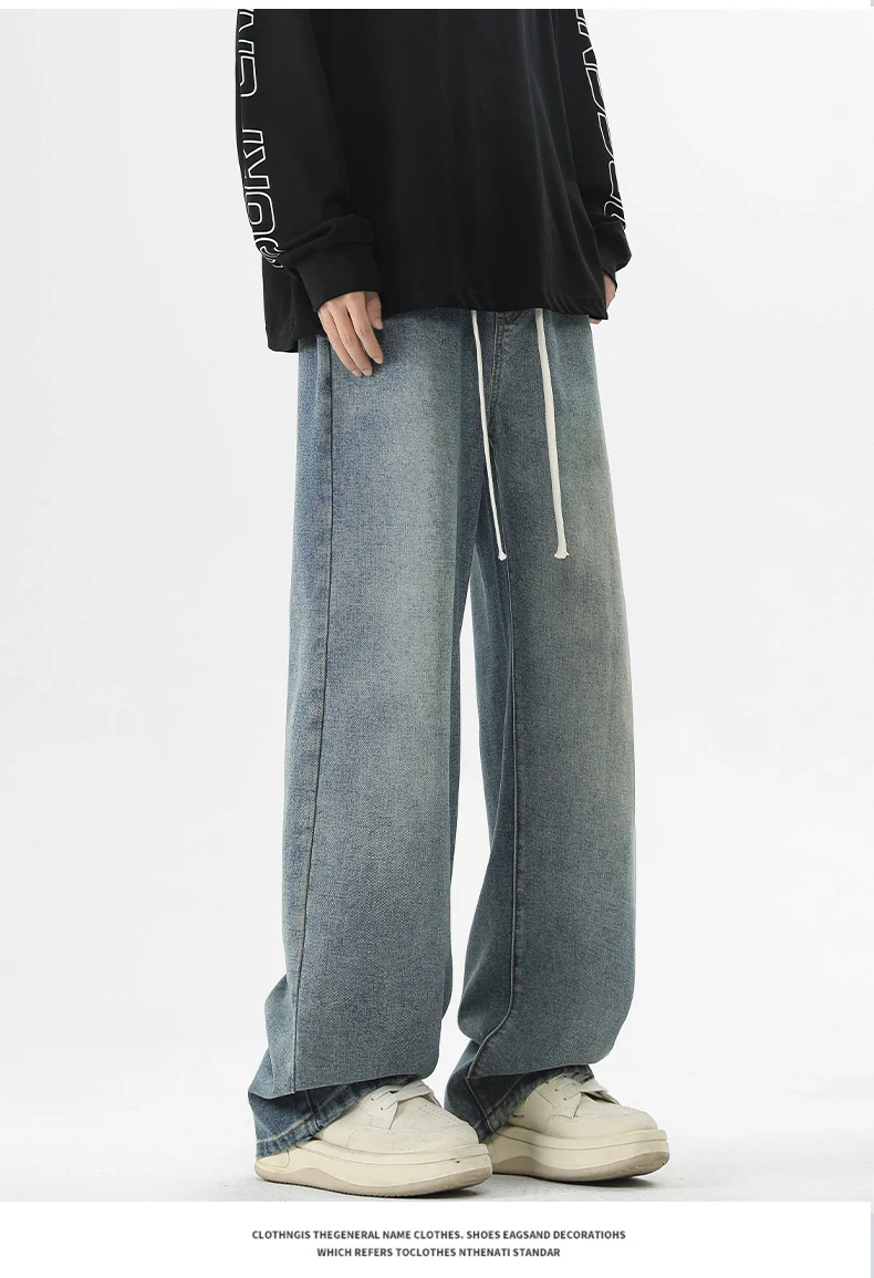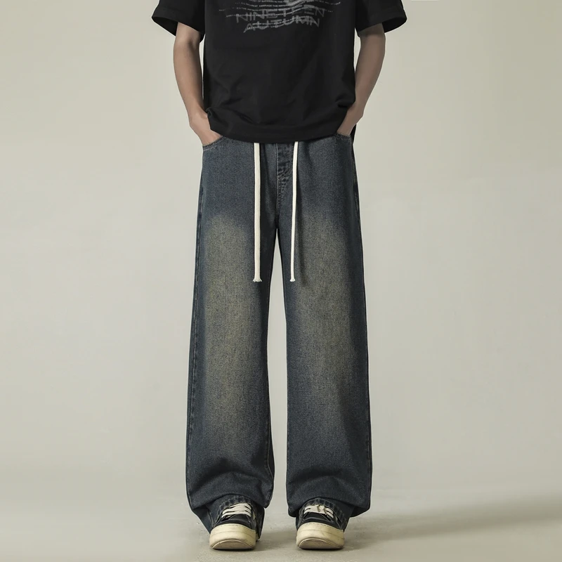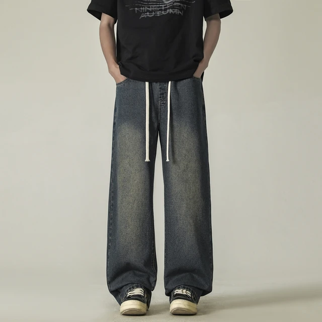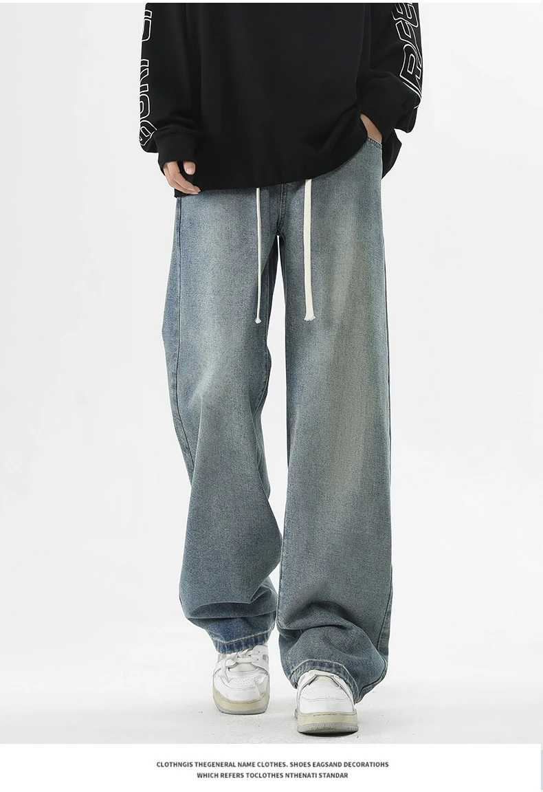 full length men’s oversize y2k black big boys jeans for man washed straight leg casual loose wide