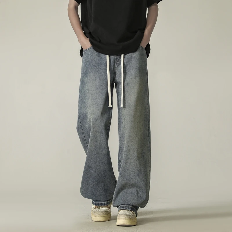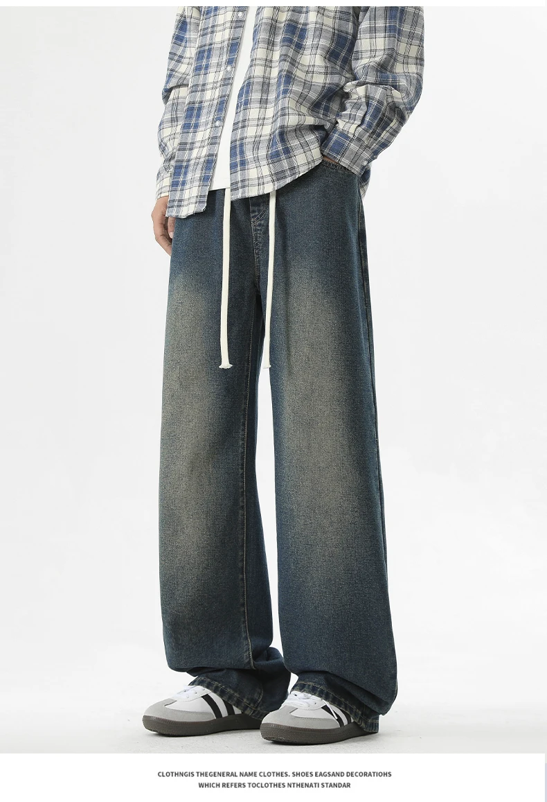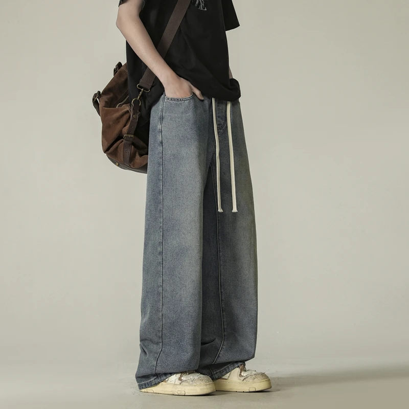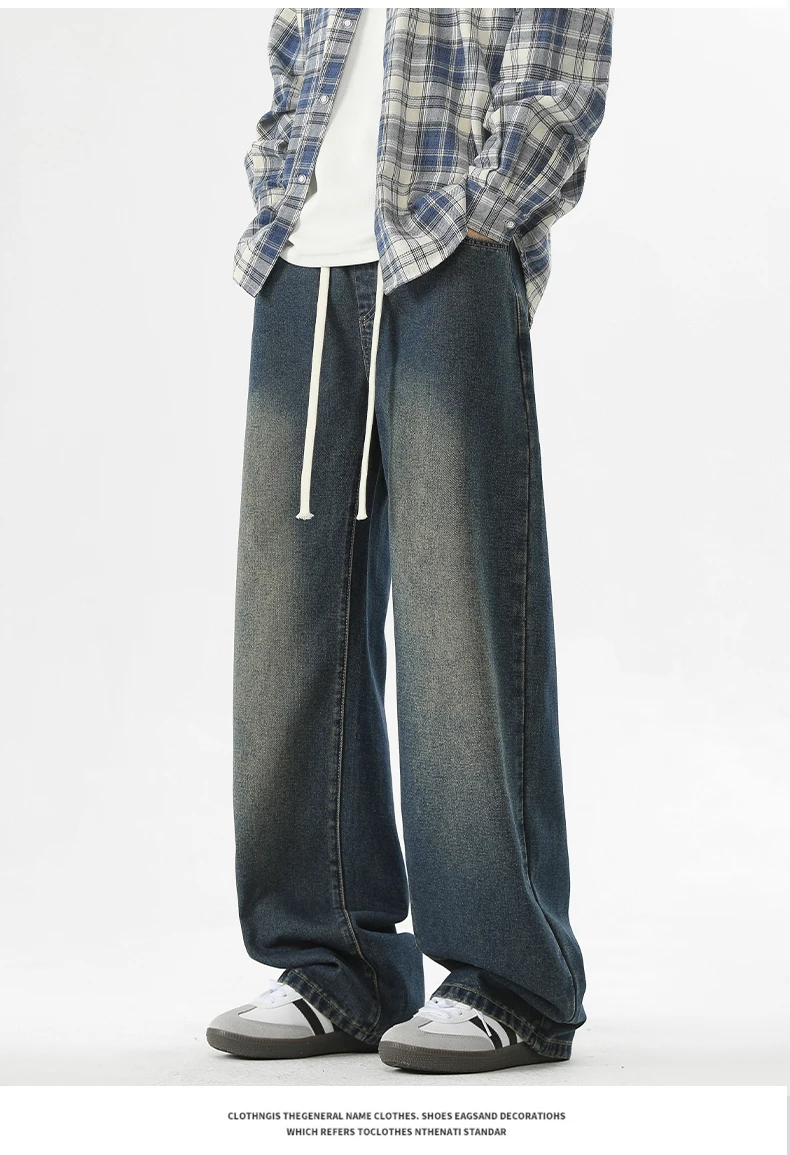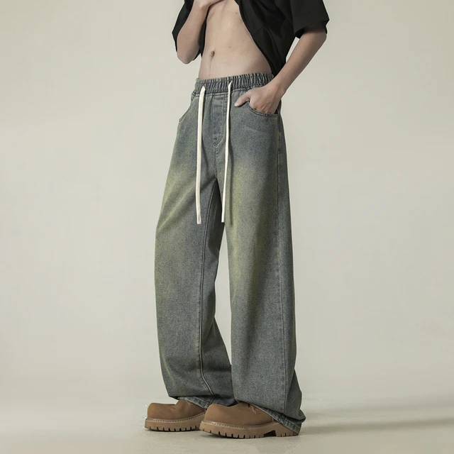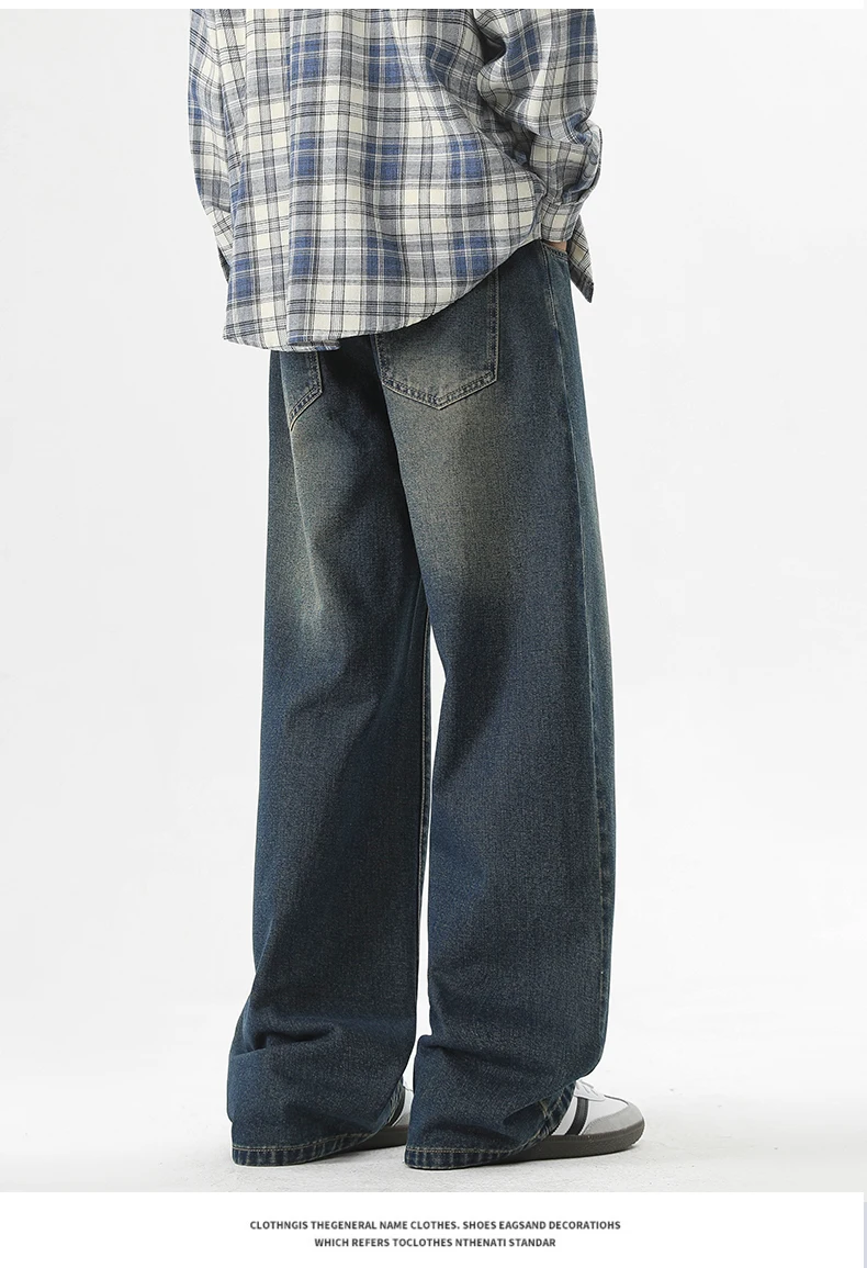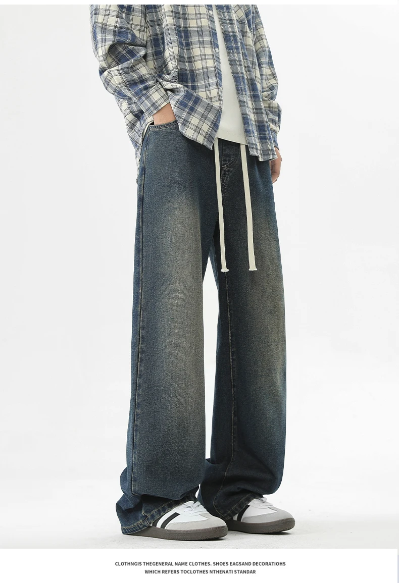 full length men’s oversize y2k black big boys jeans for man washed straight leg casual loose wide