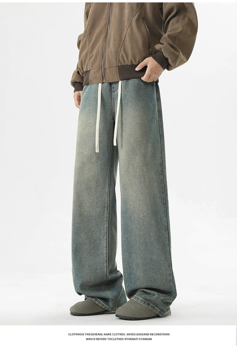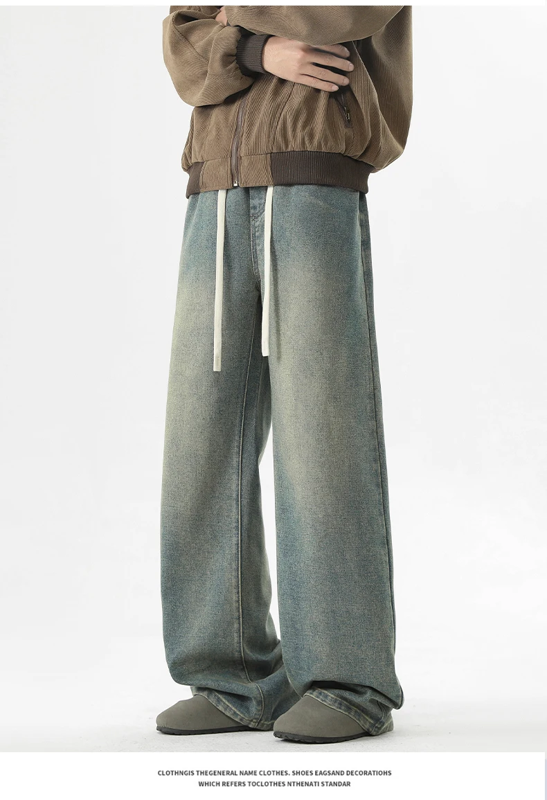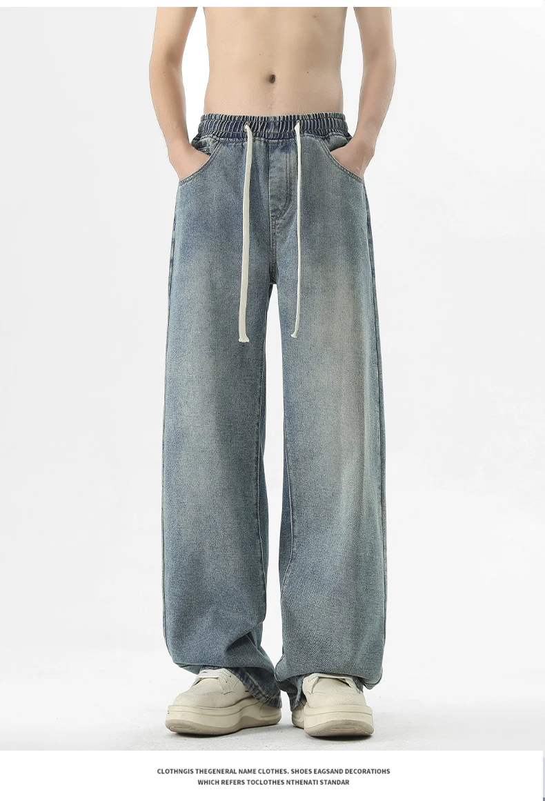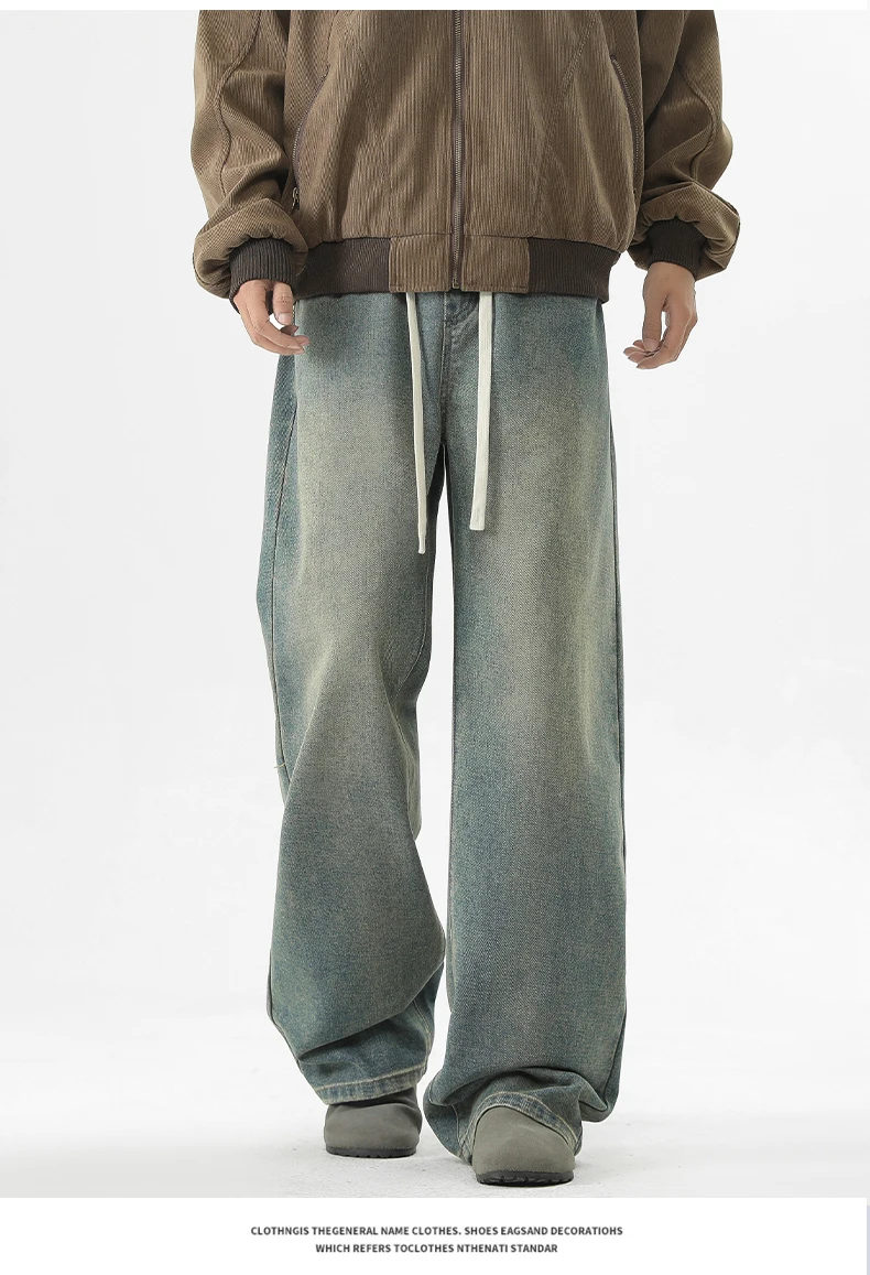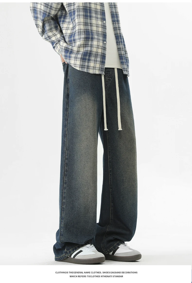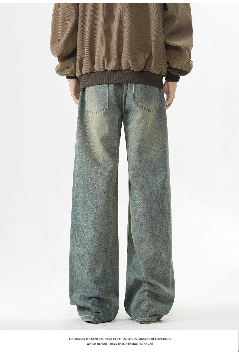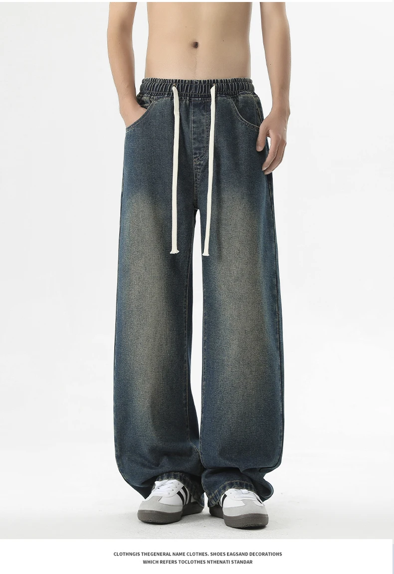 full length men’s oversize y2k black big boys jeans for man washed straight leg casual loose wide