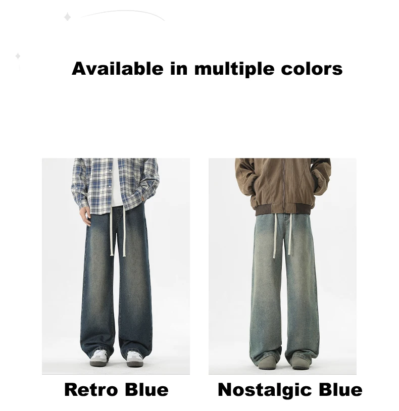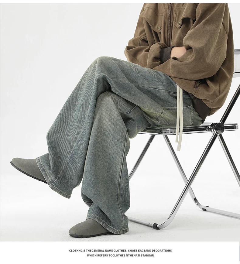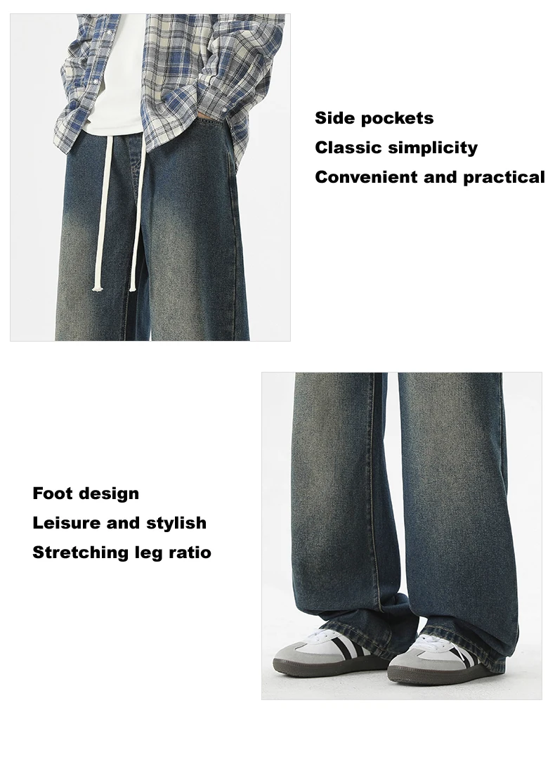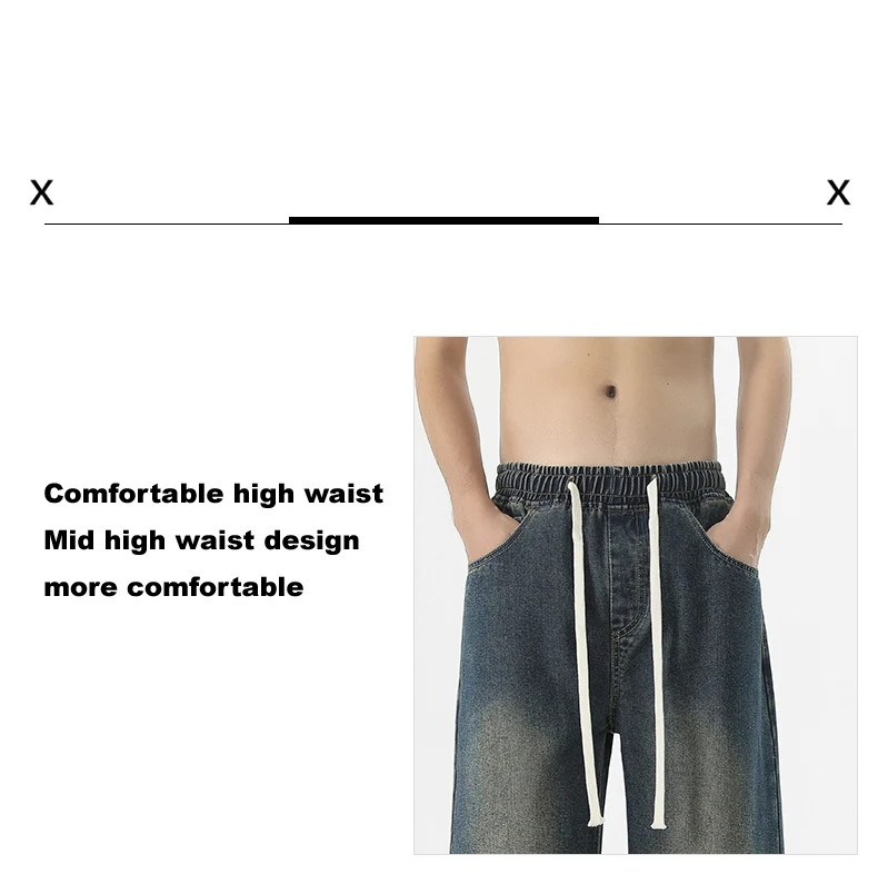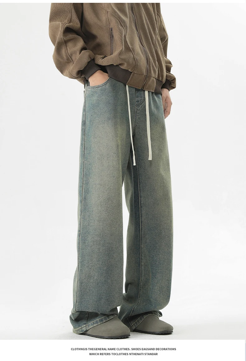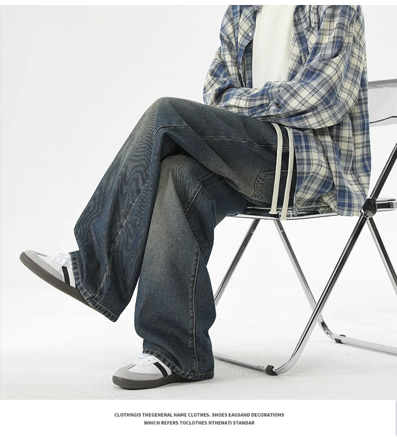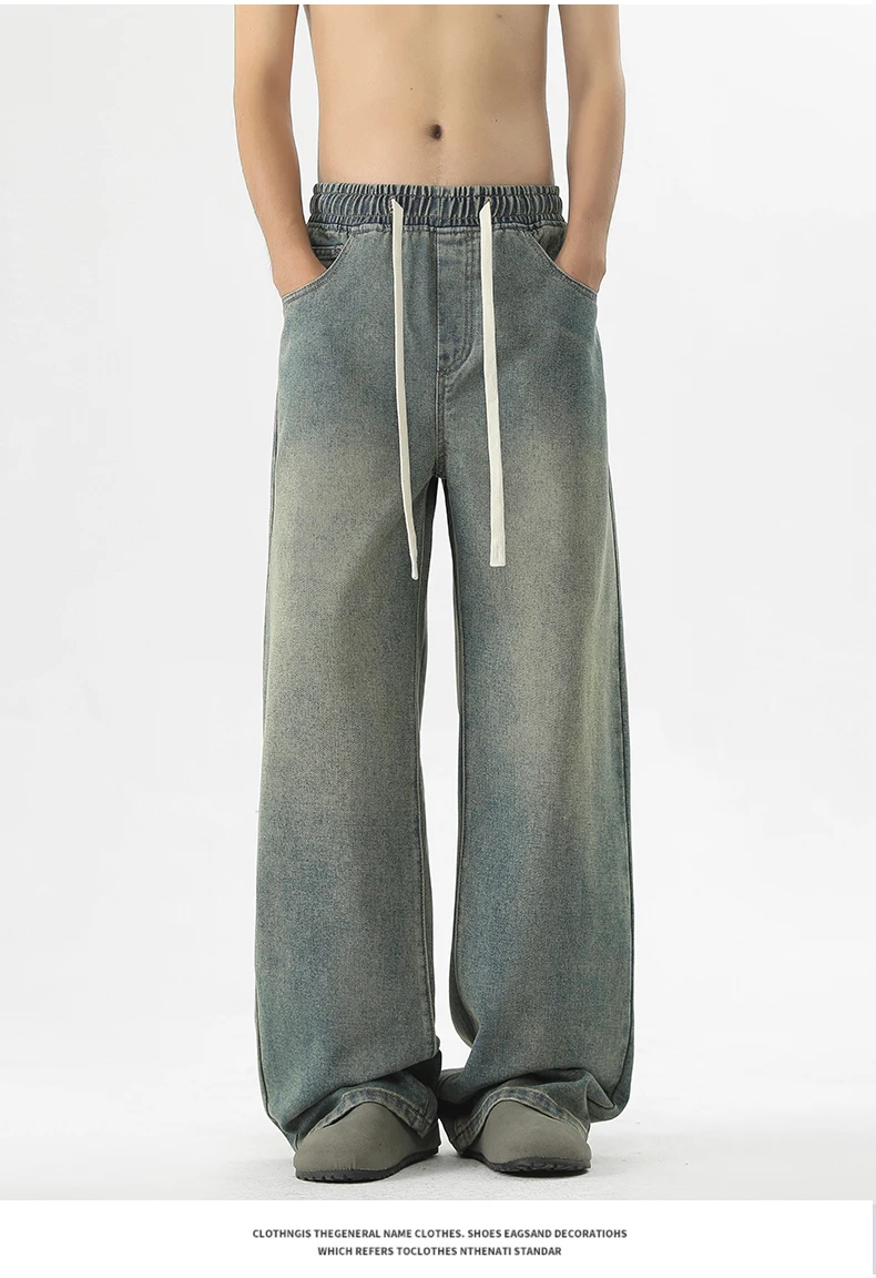 full length men’s oversize y2k black big boys jeans for man washed straight leg casual loose wide