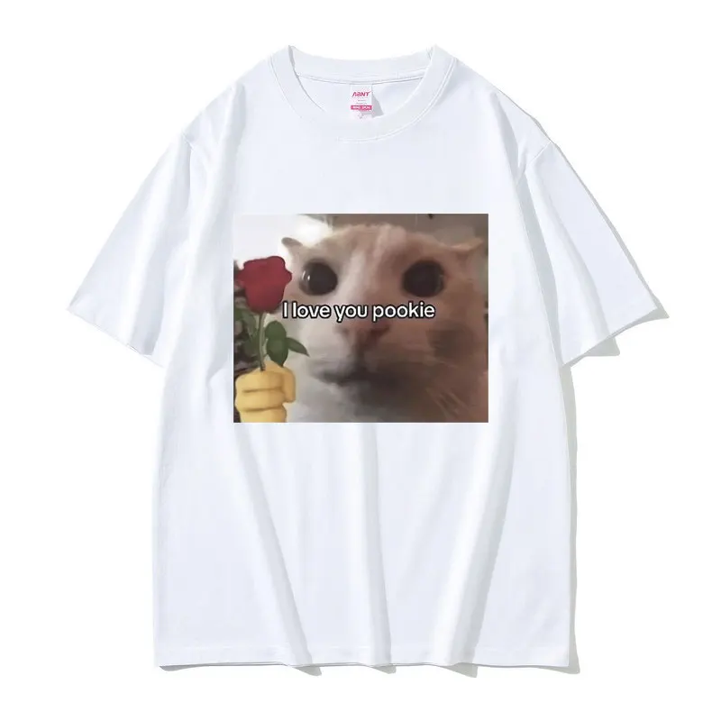 Funny I Love You Pookie Cat Graphic Print T Shirts Men Women Cute Kwaii Joke Humor Meme T-shirts Male Casual Oversized Tshirt
