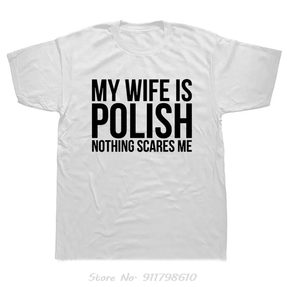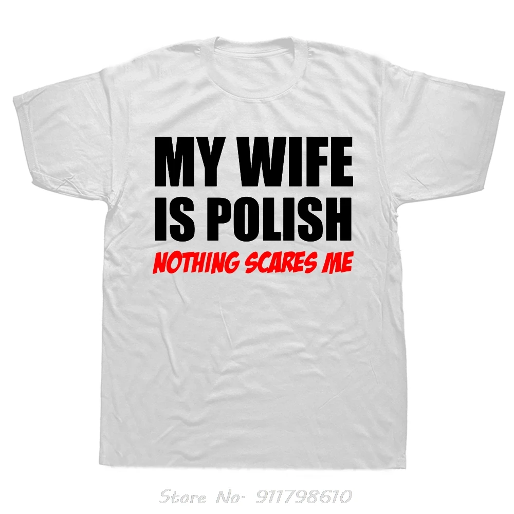 Funny My Wife Is Polish Nothing Scares Poland Oversized T-shirt Fashion New Mens Clothing Fitness T Shirt Harajuku Cotton Tshirt