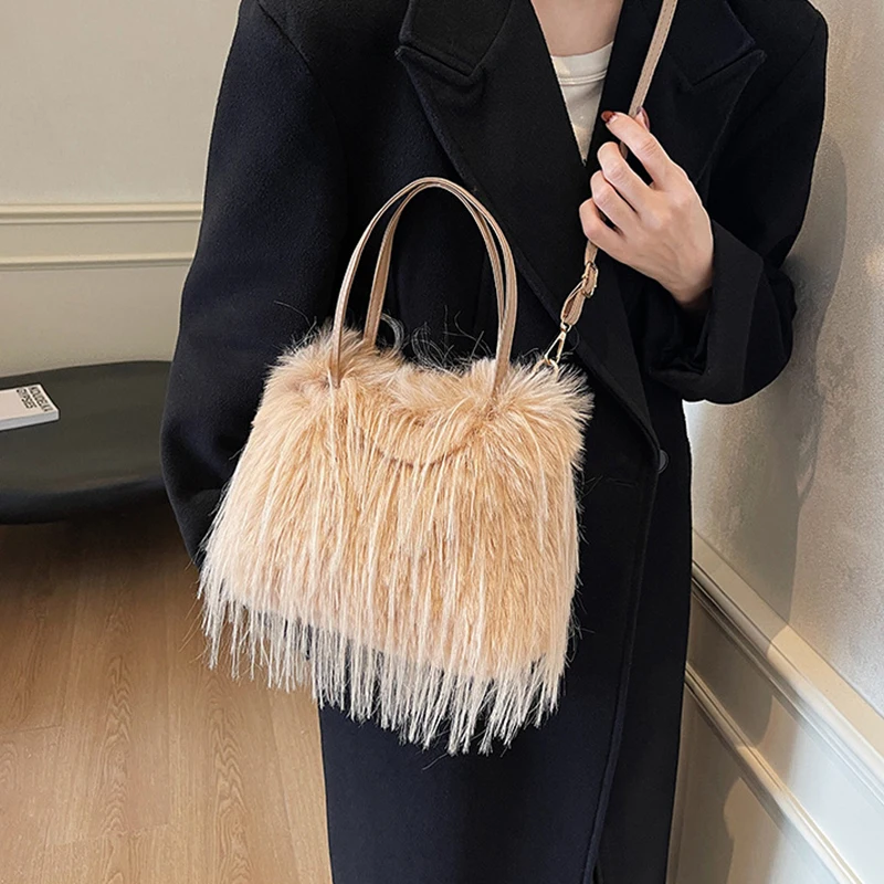 Furry Bags For Women’s Fashion Women’s Fur Tote Bags Y2K Handbag Versatile Designer Luxury