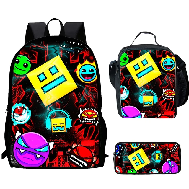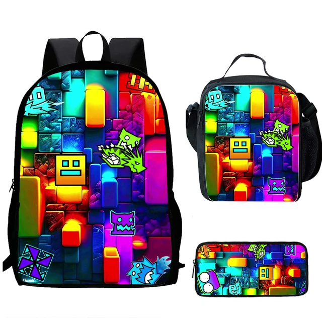 Game G-Geometry Dashs Child School Backpack With Thermal Cooler Lunch Box Pencil Bags School Bags for