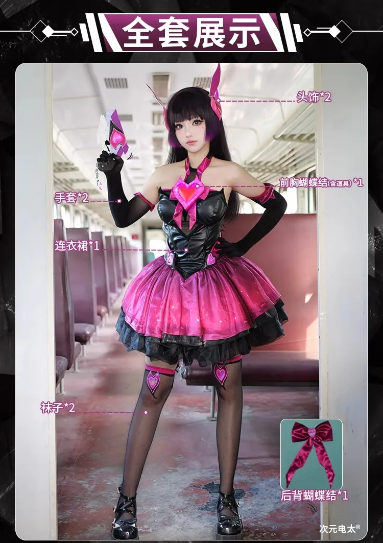 Game Overwatch DVA Cosplay Costume Women Sexy Gorgeous Princess Dress Headwear Gloves Socks Set Halloween