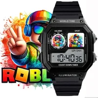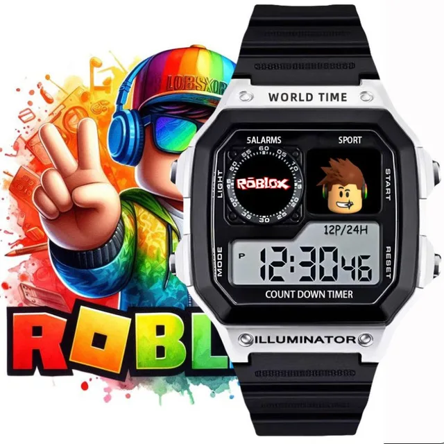 Game ROBLOX Creative Peripheral Cartoon Children's Black Silver Digital Waterproof Watch Gift Watch Decoration Daily Necessities
