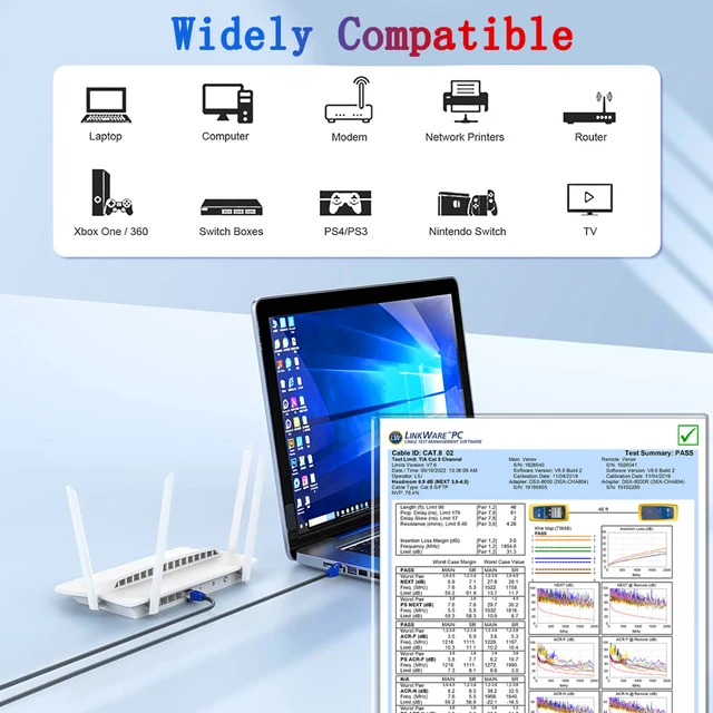 Cat 8 internet cable Backward Compatible with Cat7/6/5/5e cable; Used in smart home and smart office, server applications, cloud computing, data centers and high performance networking application; Perfect for PS4, X-box, switches, routers, network adapters, DSL/cable modems and patch panels; We provide you with lifetime guarantee as well as professional customer service support. Kindly remind, If you have any product issues, please feel free to write to us.