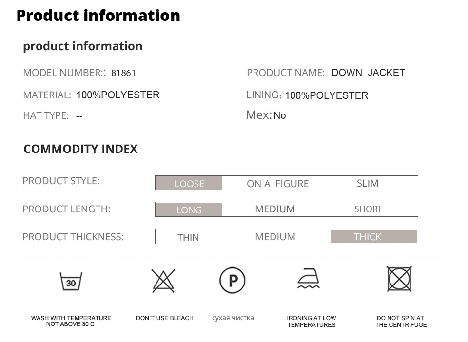 | Fabric type | Windproof |