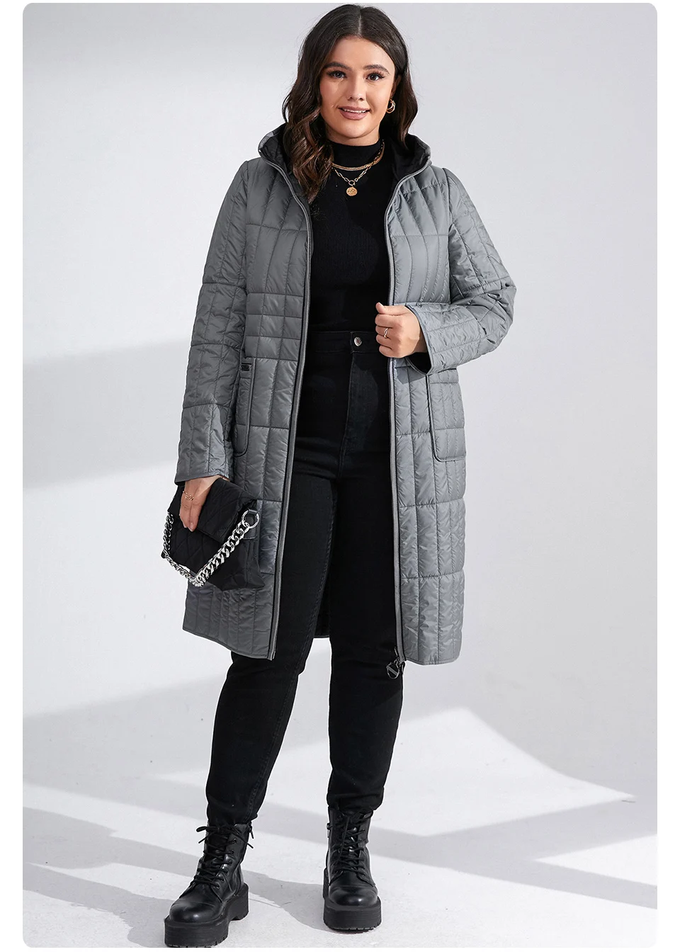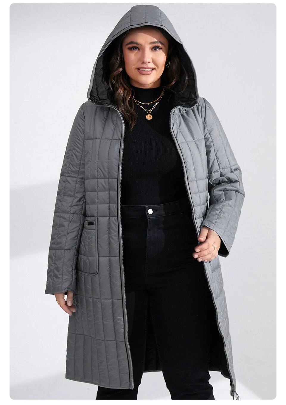 Plus Size Women Parka Winter New Loose Zipper Hooded Long Cotton-Padded Warm Coat 6853