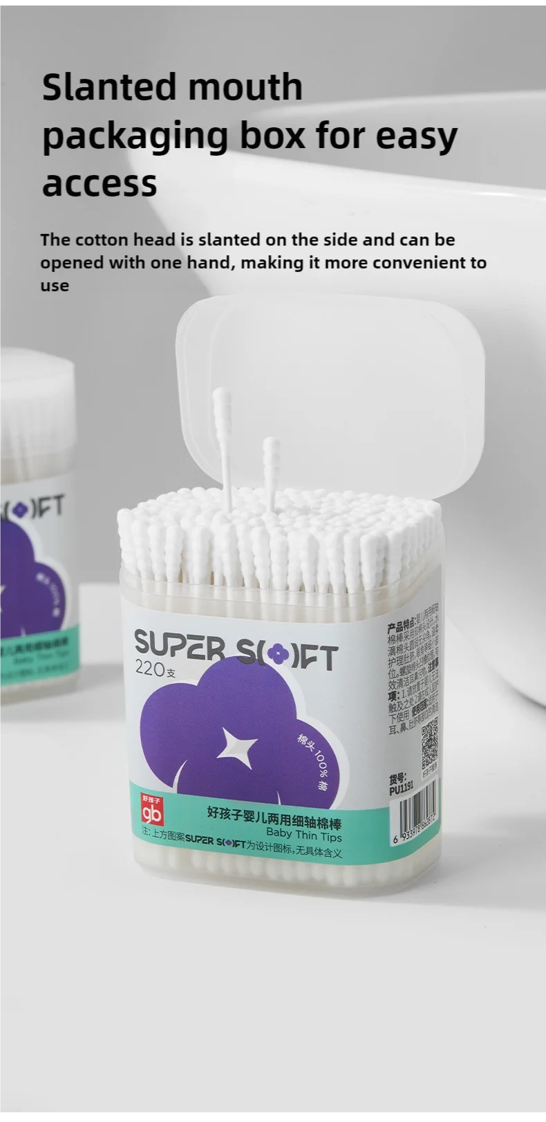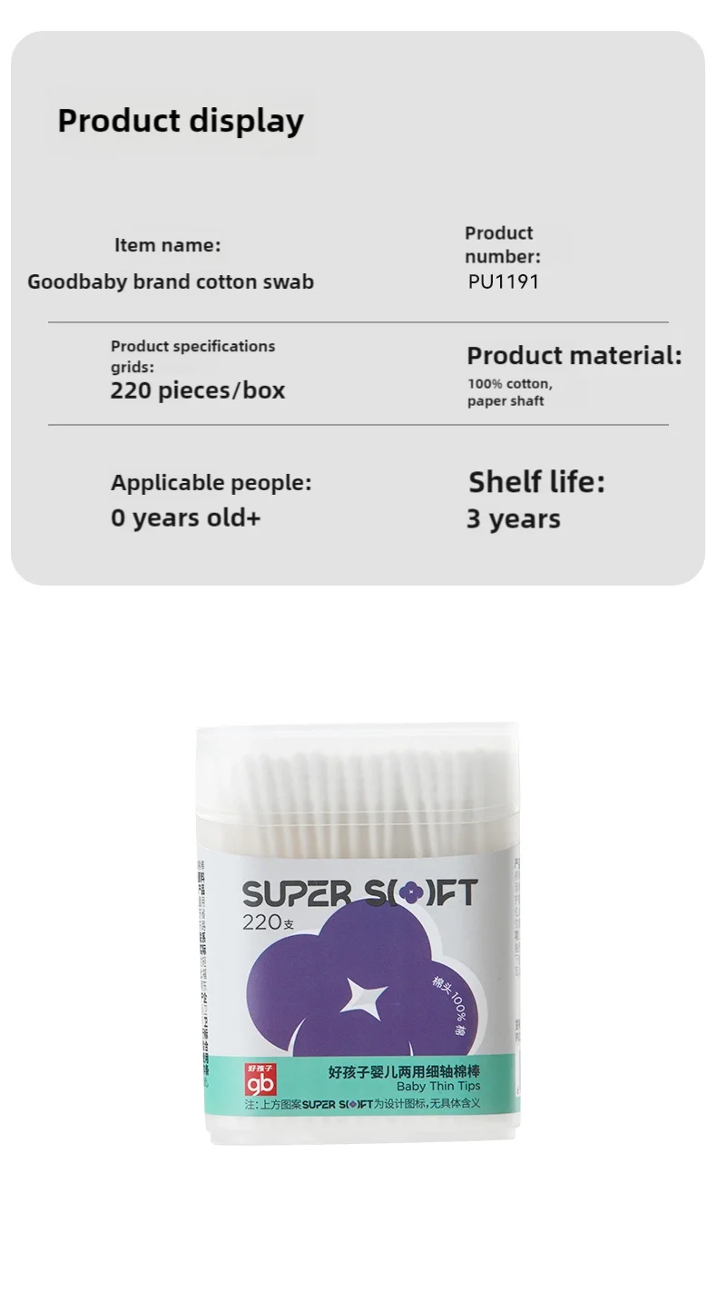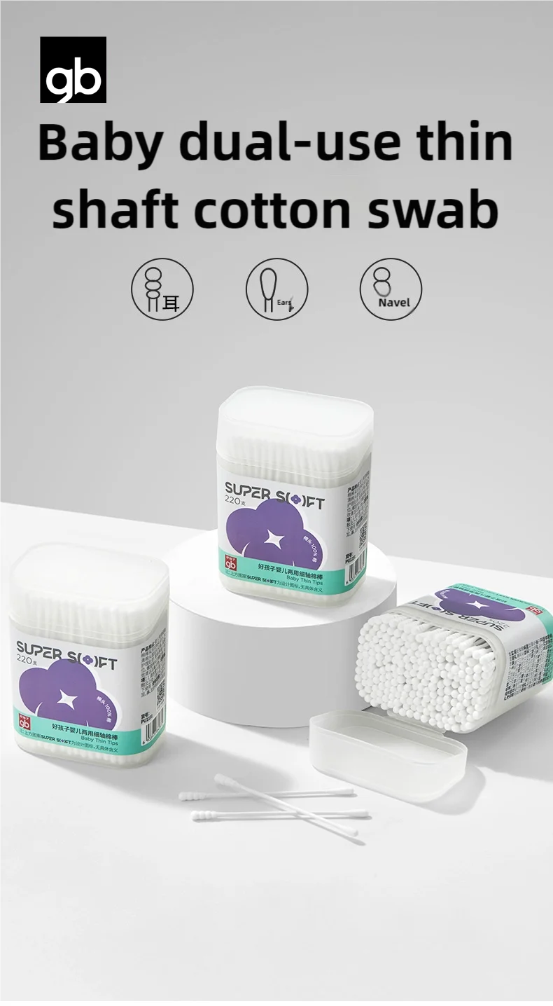 gb Cotton Swabs, , 220 Count, Double Head, for Hygiene and Beauty Care, Original Cotton Swab, Made with
