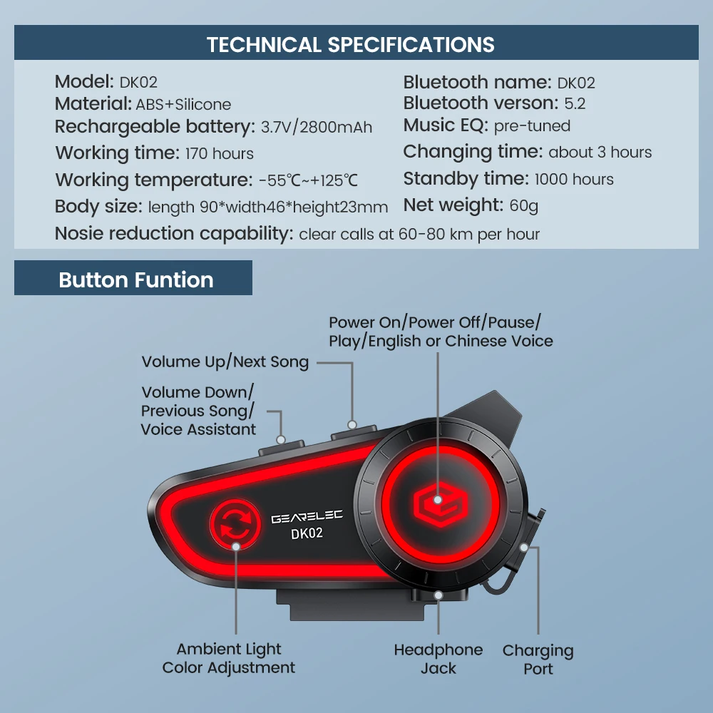 6. Automatic answering calls, safer riding: automatic answering and manual answering calls are optional, you do not need to take out your mobile phone to answer the call. You can choose to automatically answer the call after caller ID voice prompt or just manually answer the call. Press and hold the phone function key for 3 seconds to reject the incoming call.