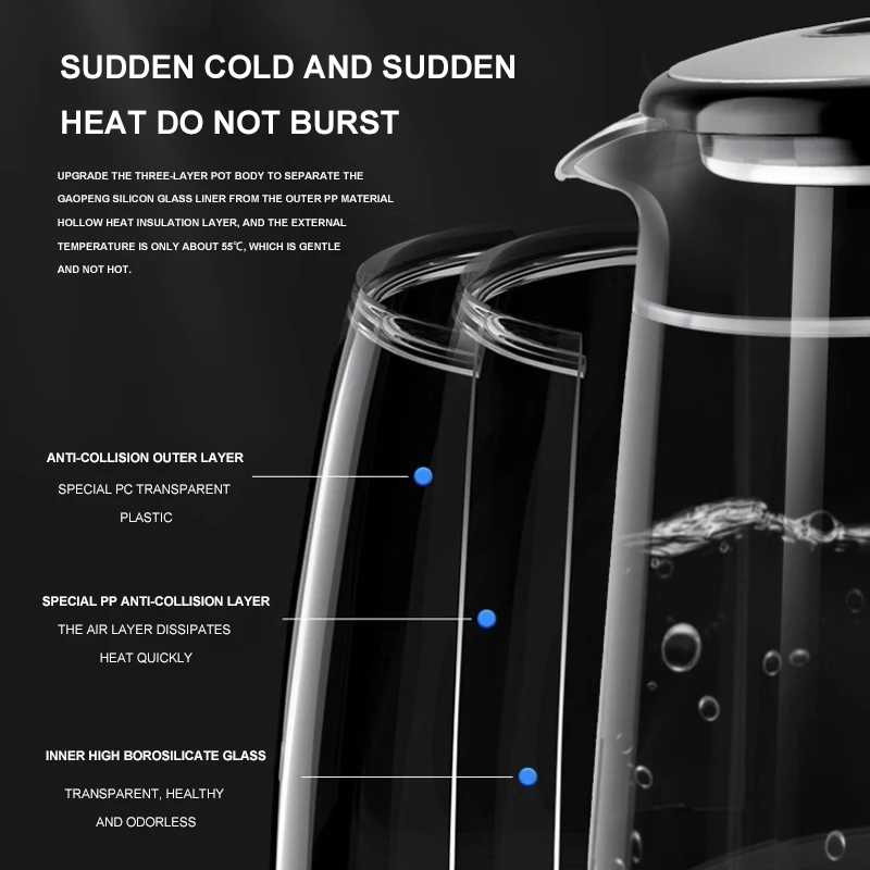 GELAIBO blue glass electric kettle household exquisite quality high temperature resistant double-layer anti-scalding integrated