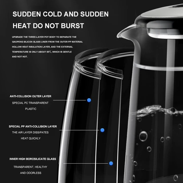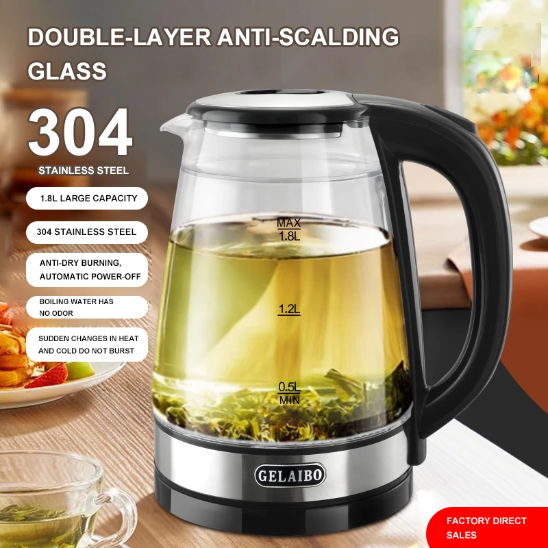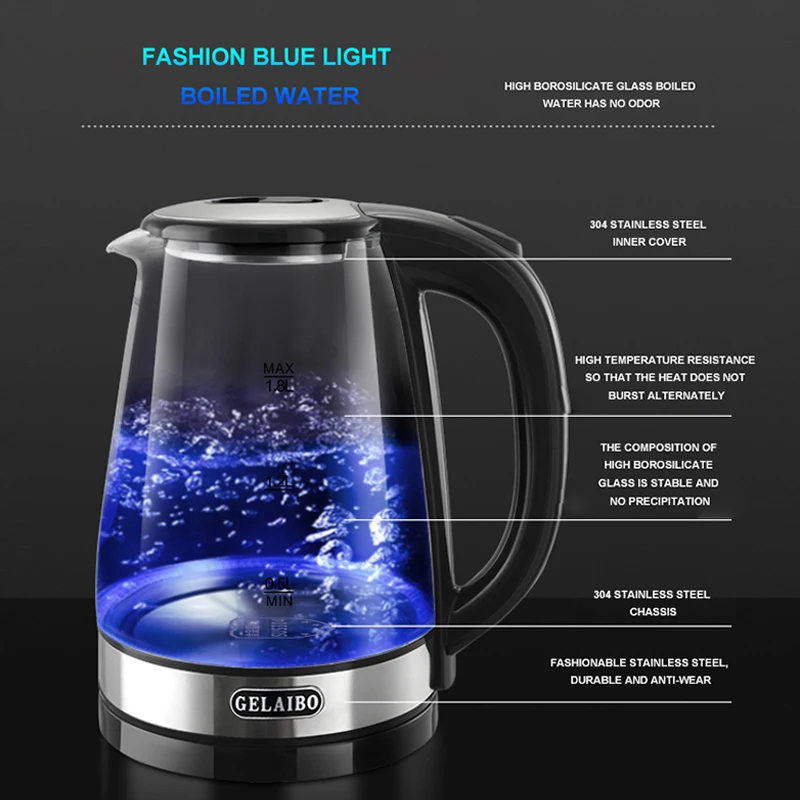 GELAIBO blue glass electric kettle household exquisite quality high temperature resistant double-layer