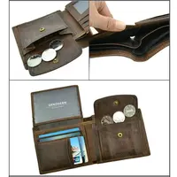 GENODERN Cow Leather Men Wallets with Coin Pocket Vintage Male Purse Function Brown Genuine Leather Men Wallet  with Card Holders