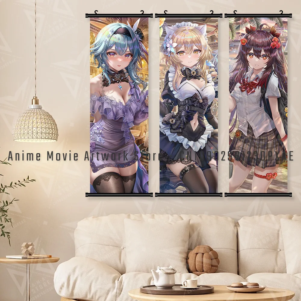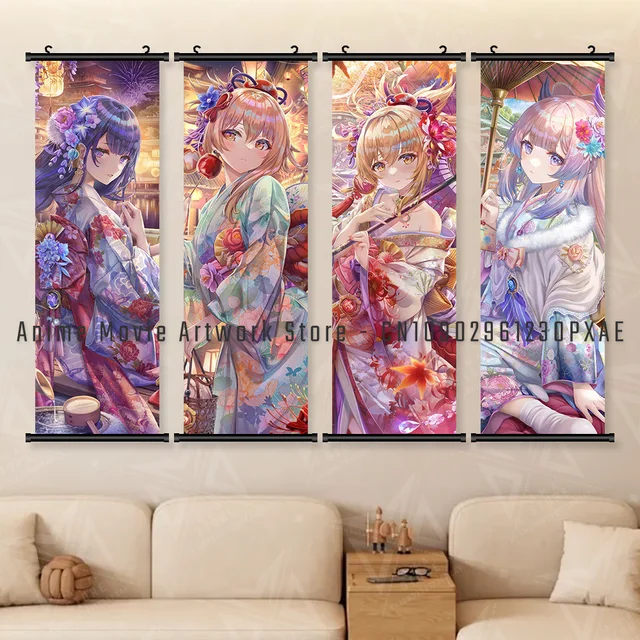 Genshin Impact Game Figures Canvas Print Hanging Painting Yae Miko Kimono Wall Art Posters Kawaii Anime Room Home Decor Picture