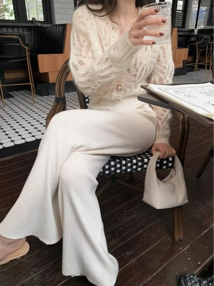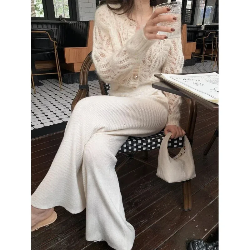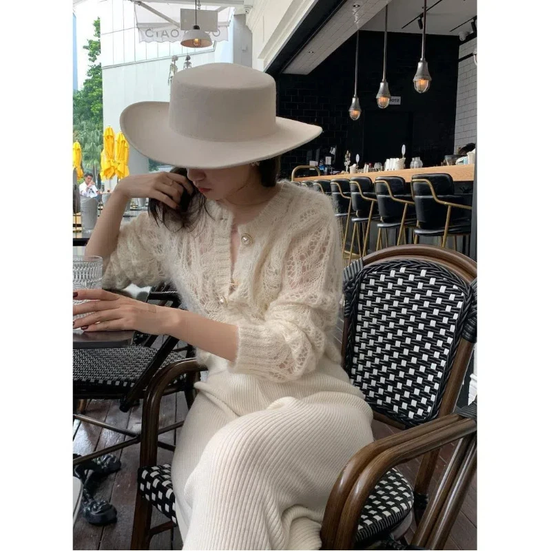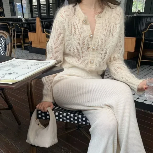 Gentle Autumn New Knitted Cardigan Women’s Sweater Sweet Pearl Button Hollow Out Jacket Top 16179
