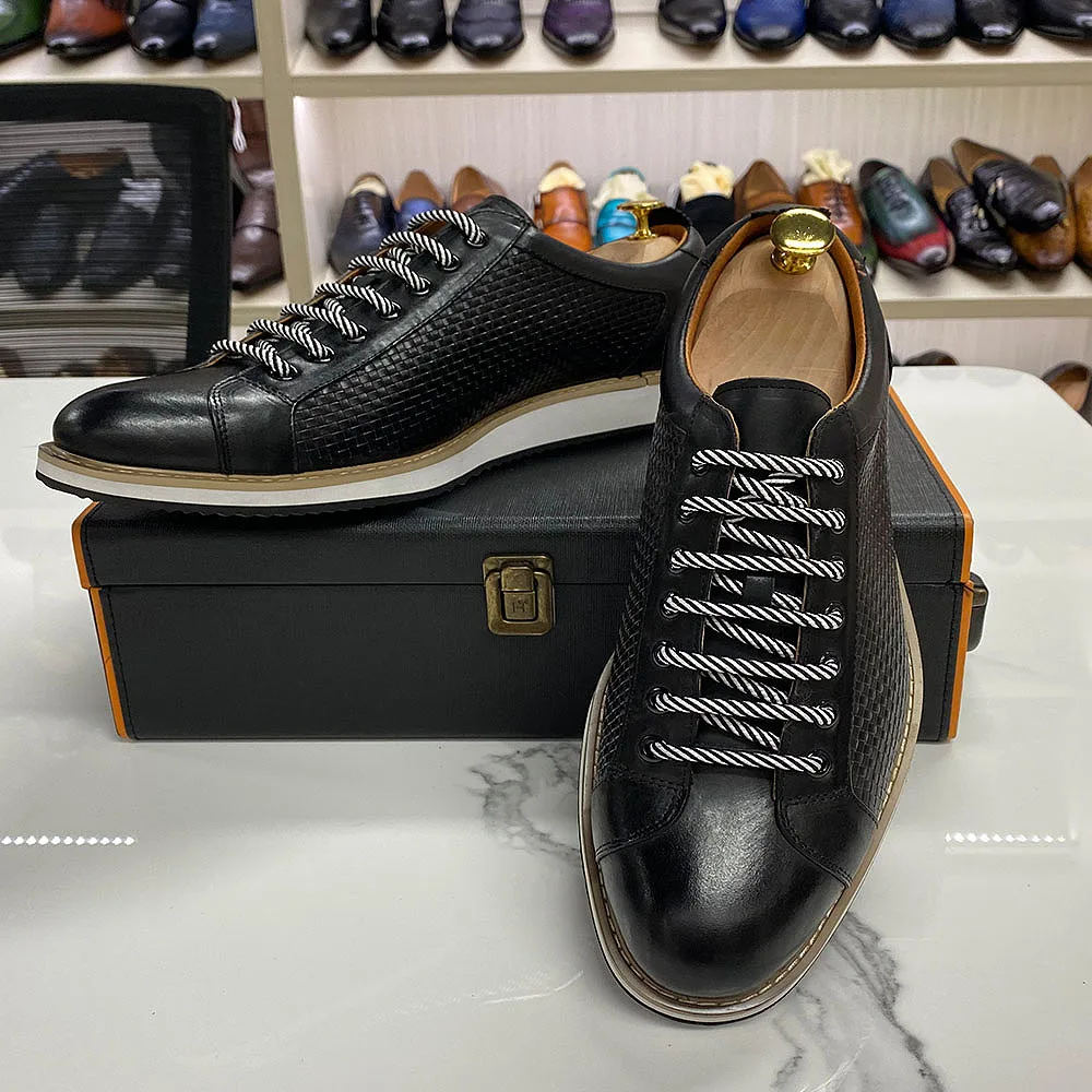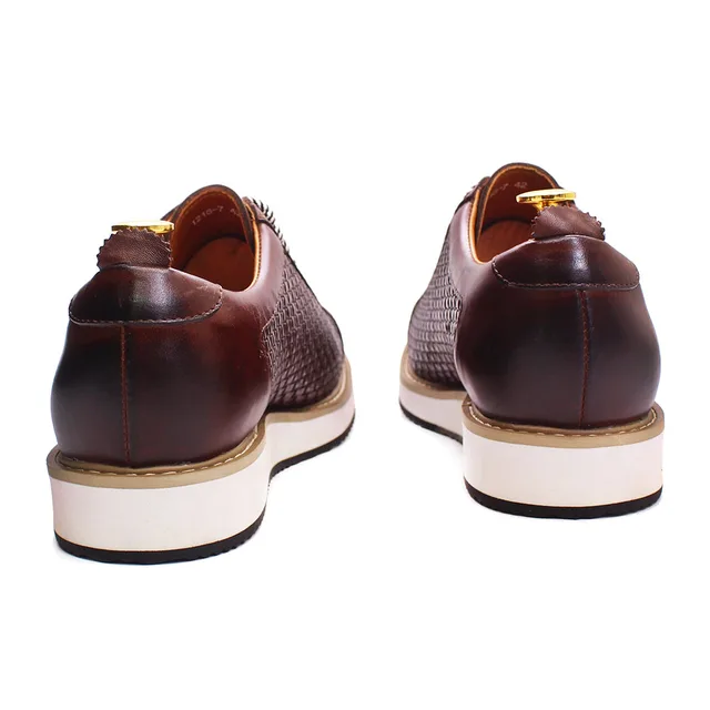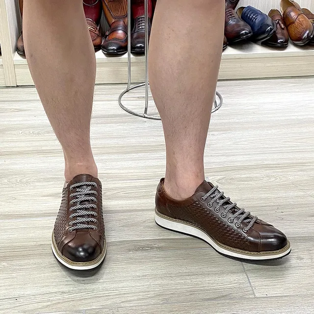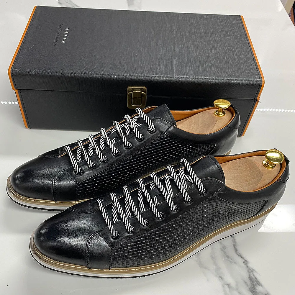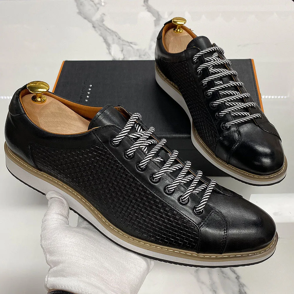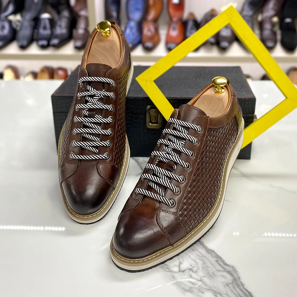 Genuine Cow Leather Men’s Casual Business Shoes 7-Eyelet Lace Up European Luxury Flat Driving Shoe