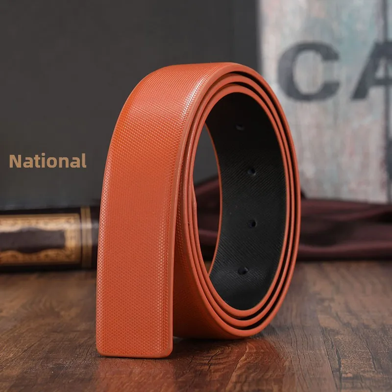 Genuine Leather Belt for Men Smooth Bule Waist Belt Boys Youth Adult 3.5cm Wide No Head Pattern Belt Faion Accory