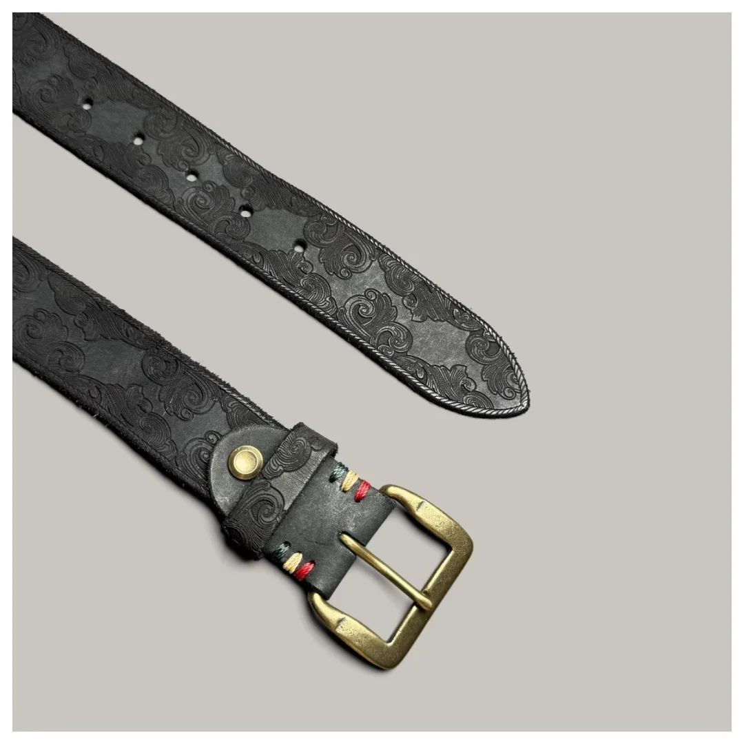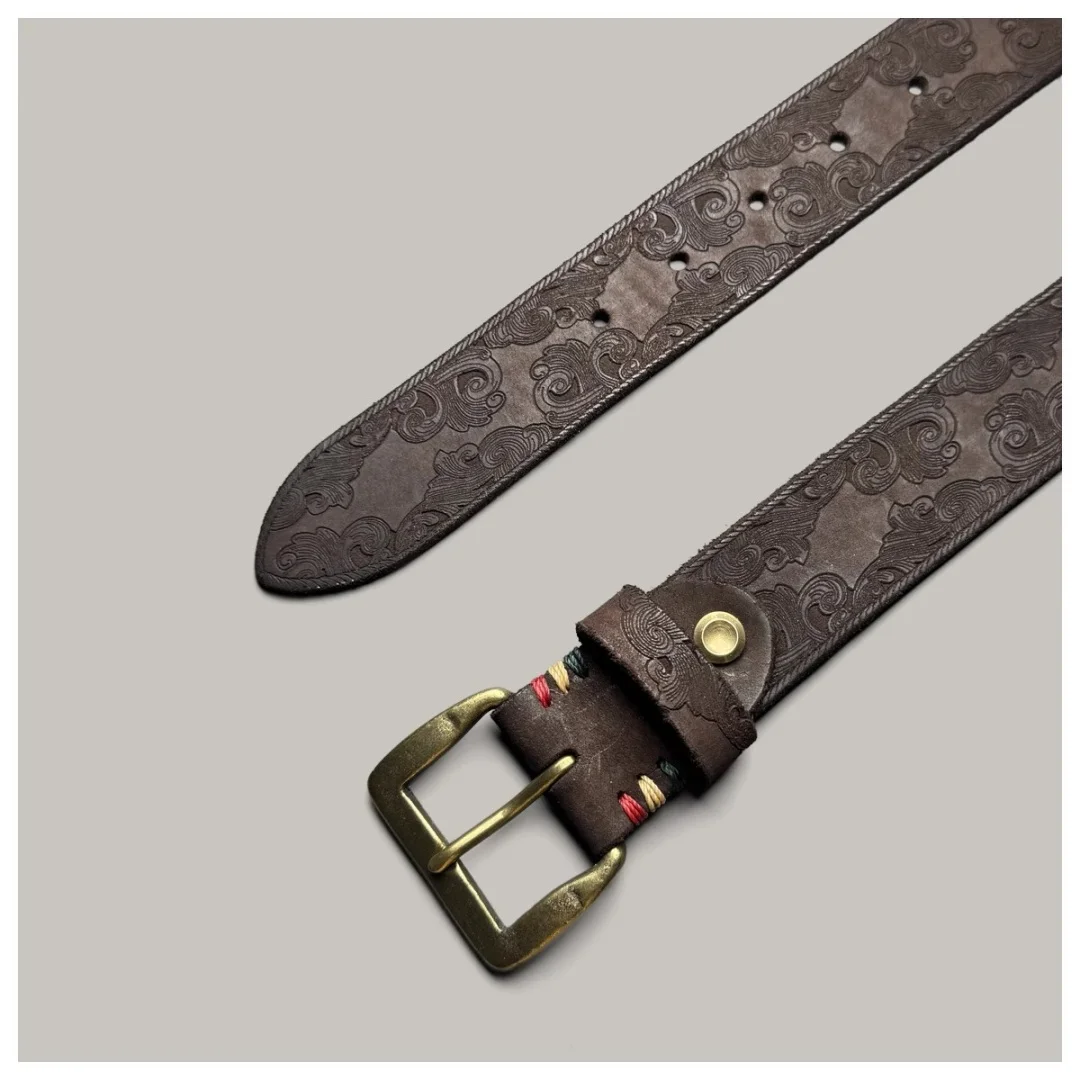 Handmade classic retro style pure copper Horseshoe buckle no interlayer cowhide men’s belt 100% genuine leather Jeans Soft Belt