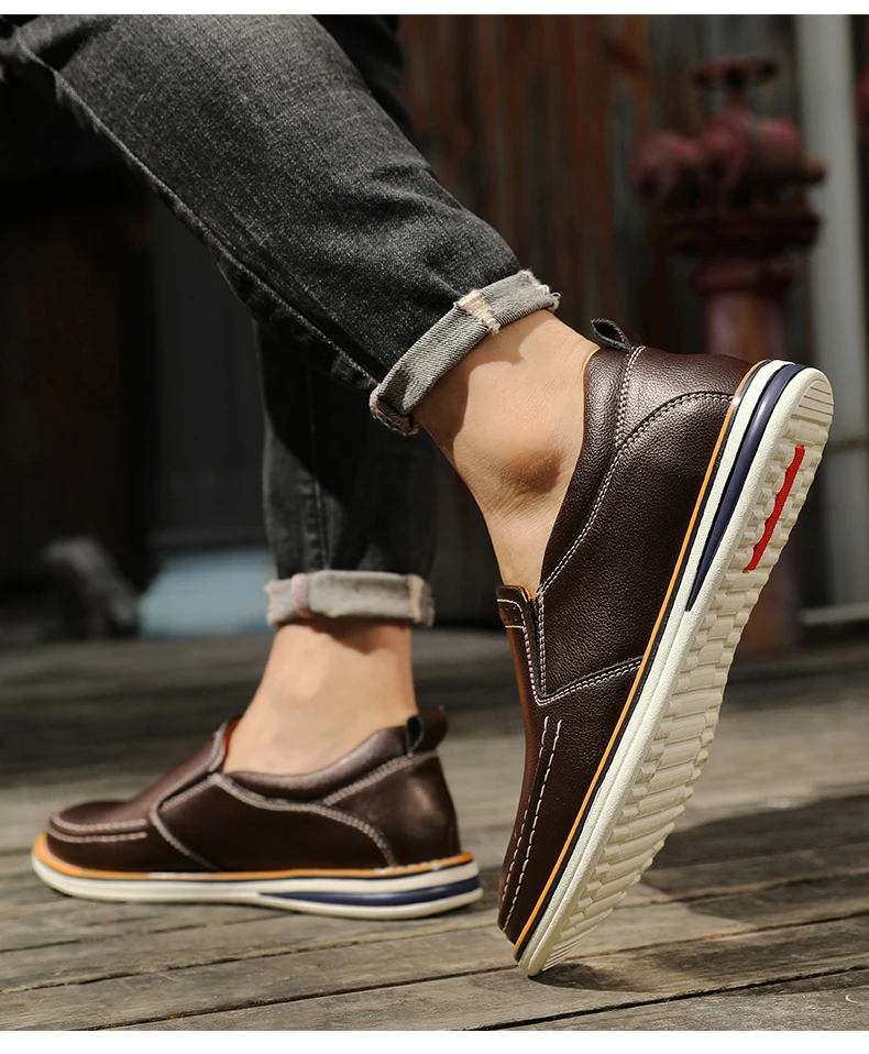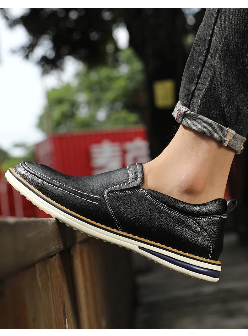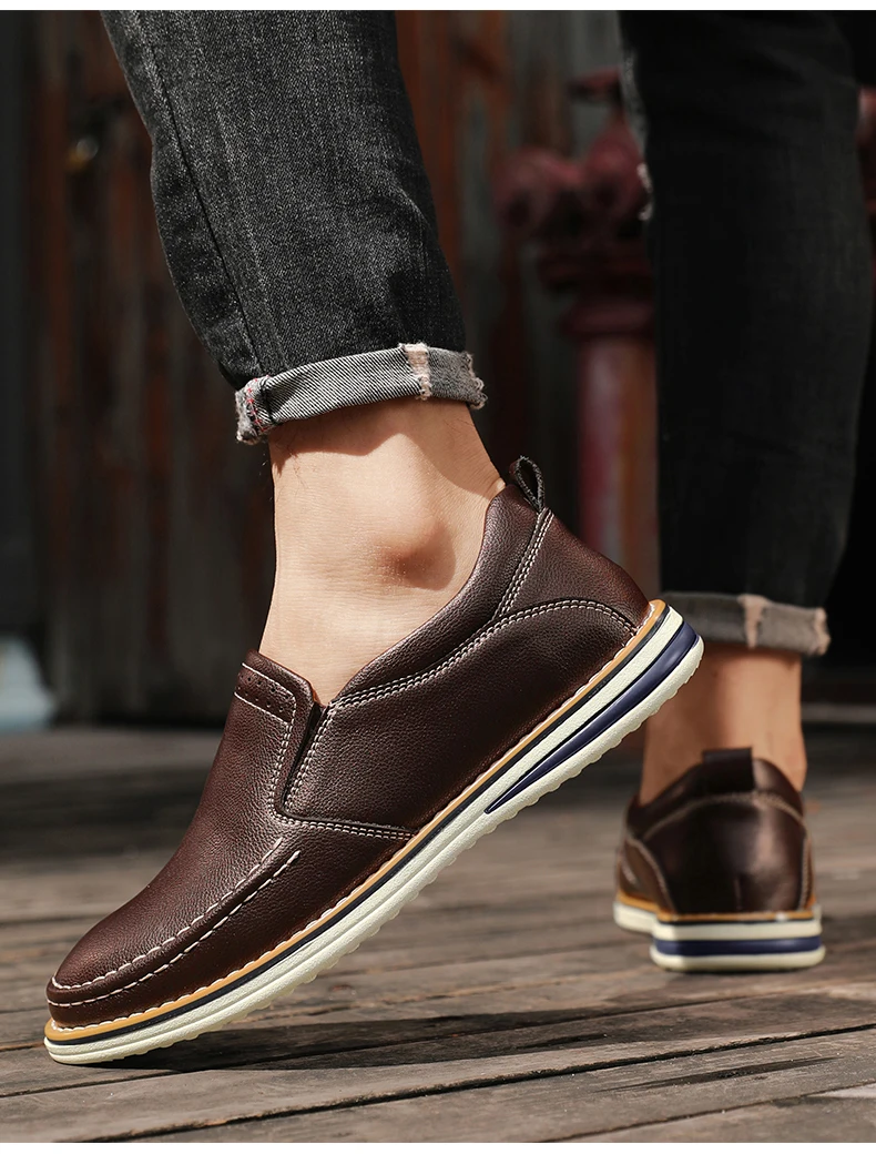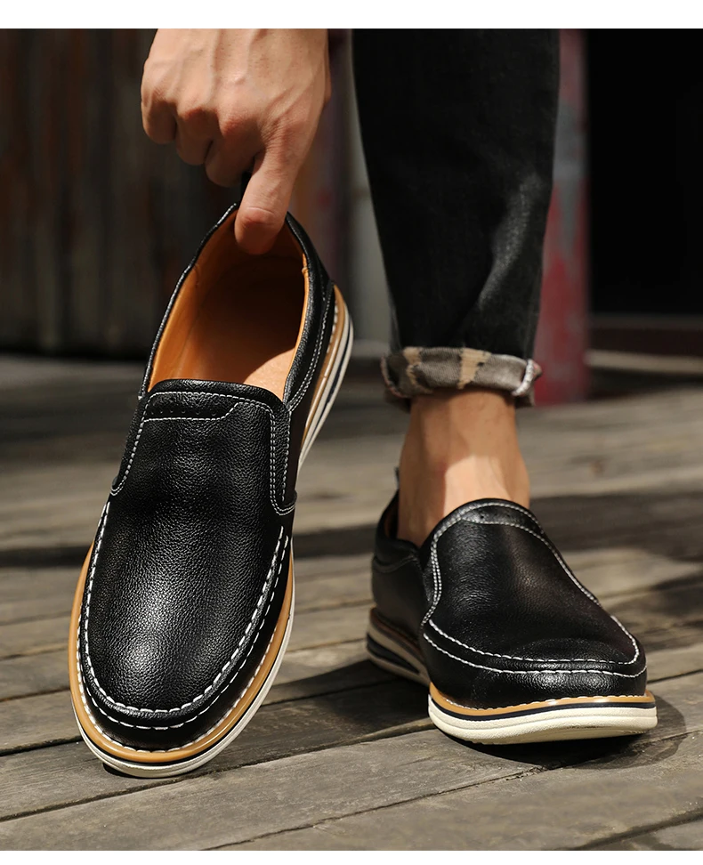 Genuine Leather Men’s Shoes Fashion Breathable Men Casual Shoes Outdoor Flats Driving Shoes Large