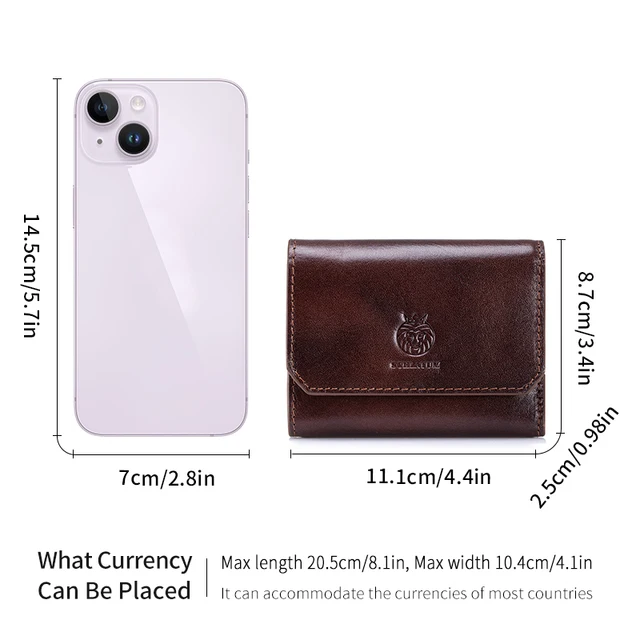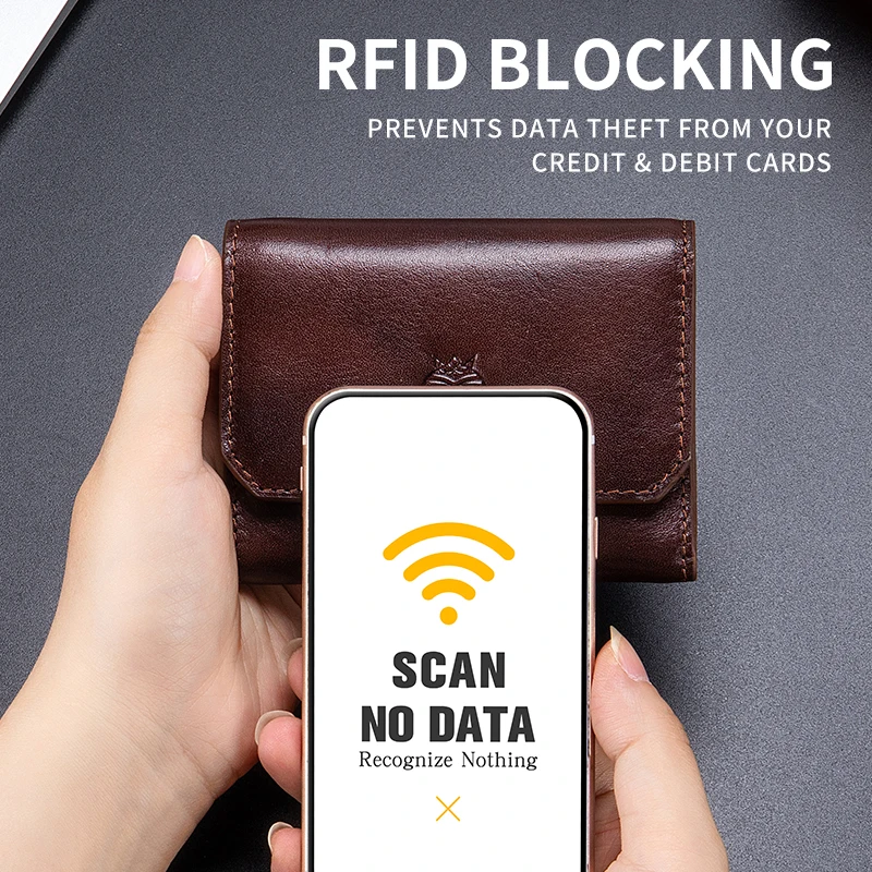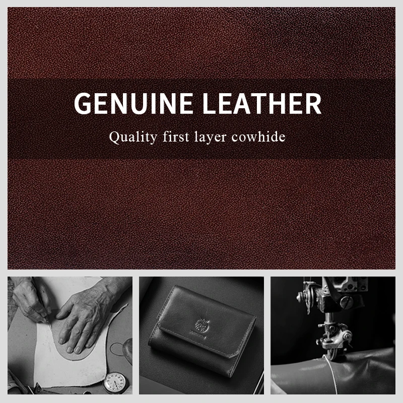 Genuine Leather Wallet for Men Minimalist Tri-Fold Purse with RFID Protection Zipper Coin Pocket Credit