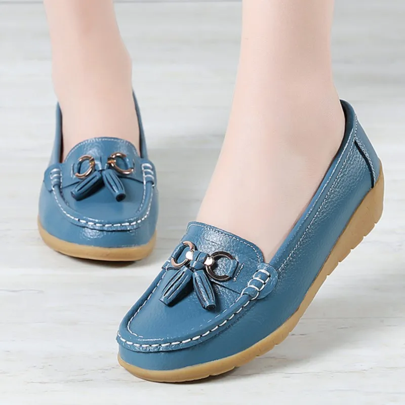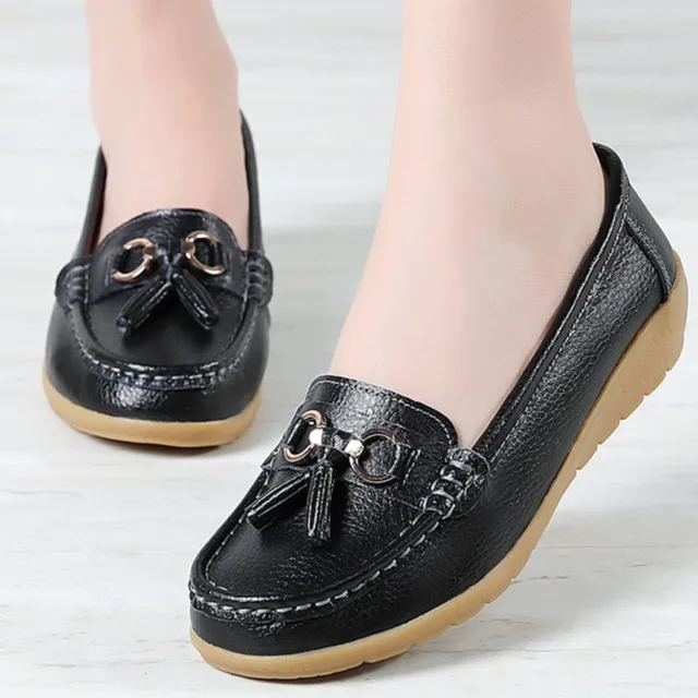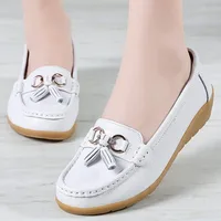 Genuine Leather Women Flats Fashion Casual Women Shoe Moccasins Shoes Woman Slip On Flat Shoes Black Ladies Shoes Plus Size