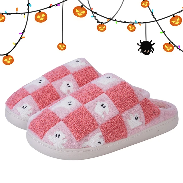 Be the first to review “Ghost Checkered Plush Slippers Halloween Warm Flat Shoes Comfortable Thermal Closed Toe Slippers Non-Slip”