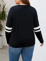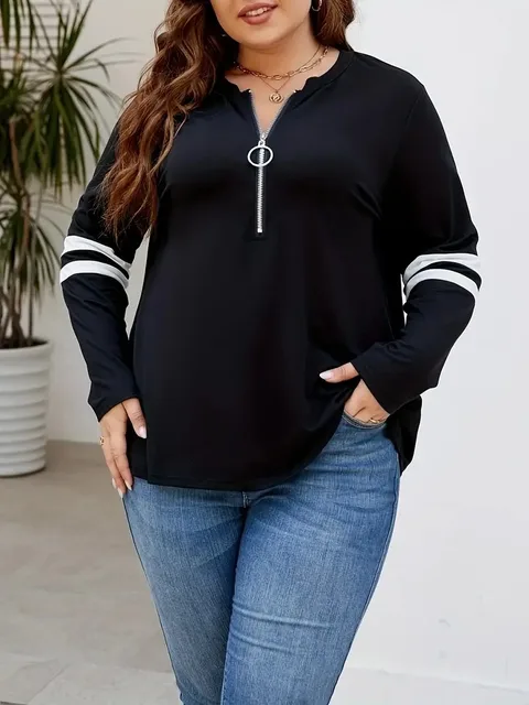 GIBSIE Plus Size Black O-ring Zipper Front Sweatshirts Women 2024 Spring Autumn Stripe Long Sleeve Female Casual Pullover Tops