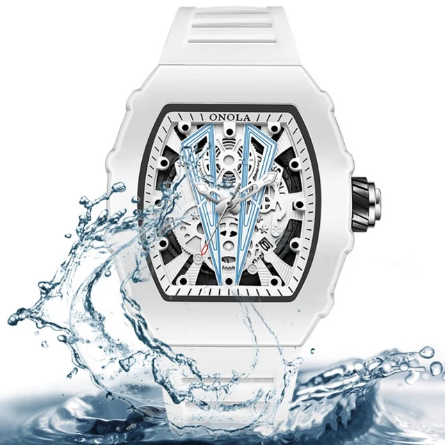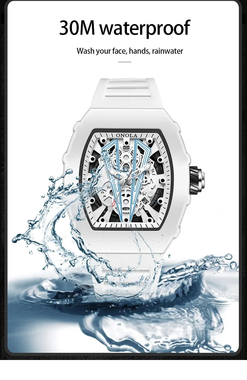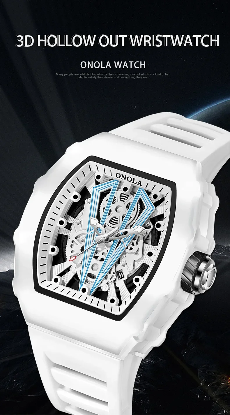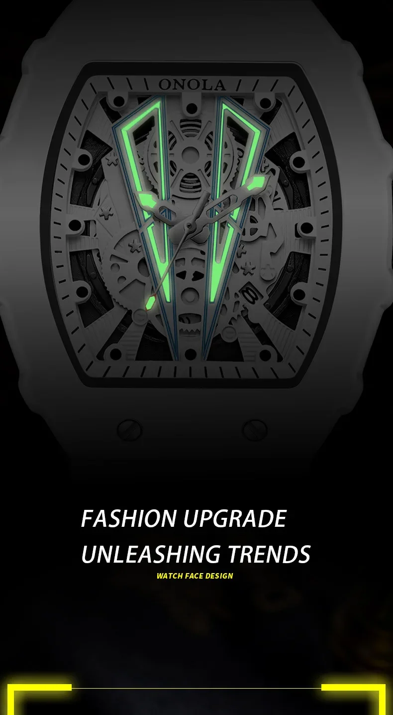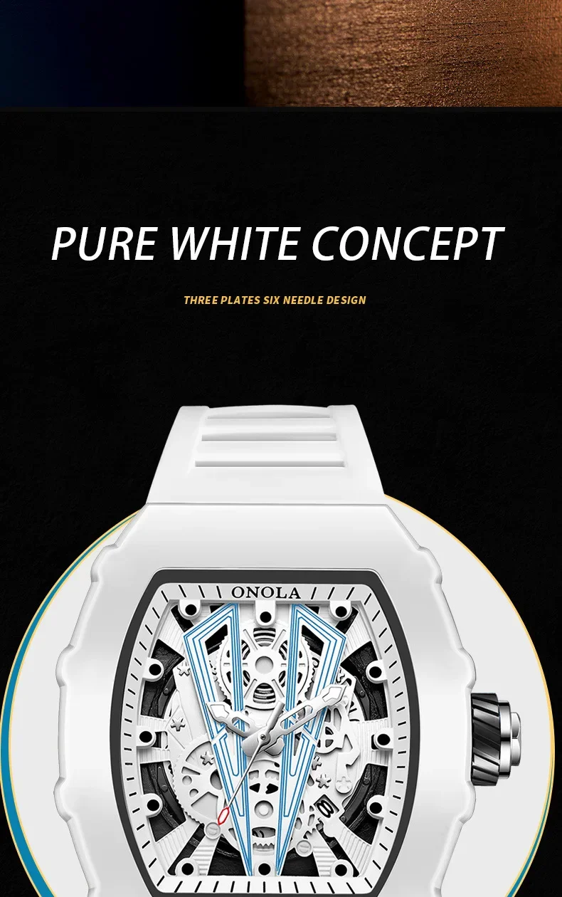 Gift Box Watches for Man ONOLA 3826 Fashion White Quartz Wristwatches Luminous Calendar Waterproof Silicone Strap Man Watch