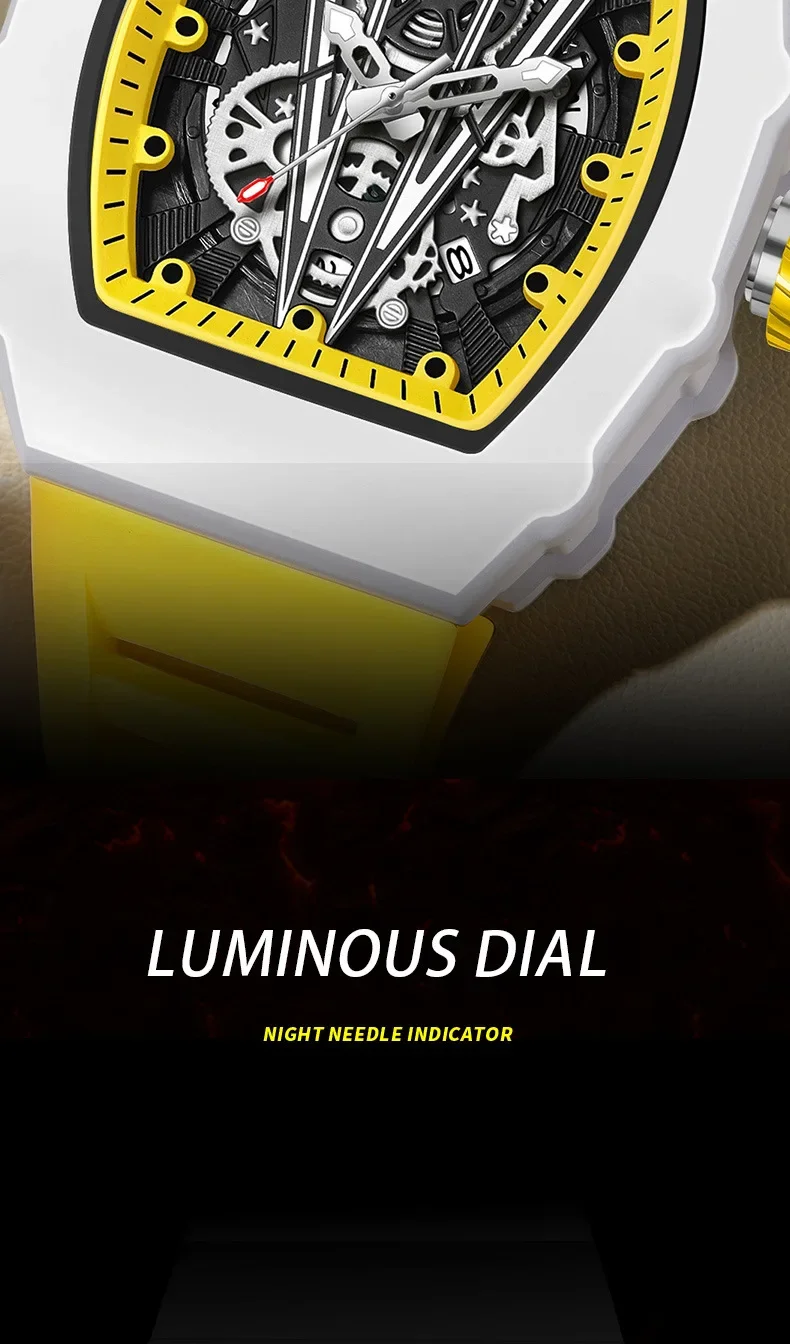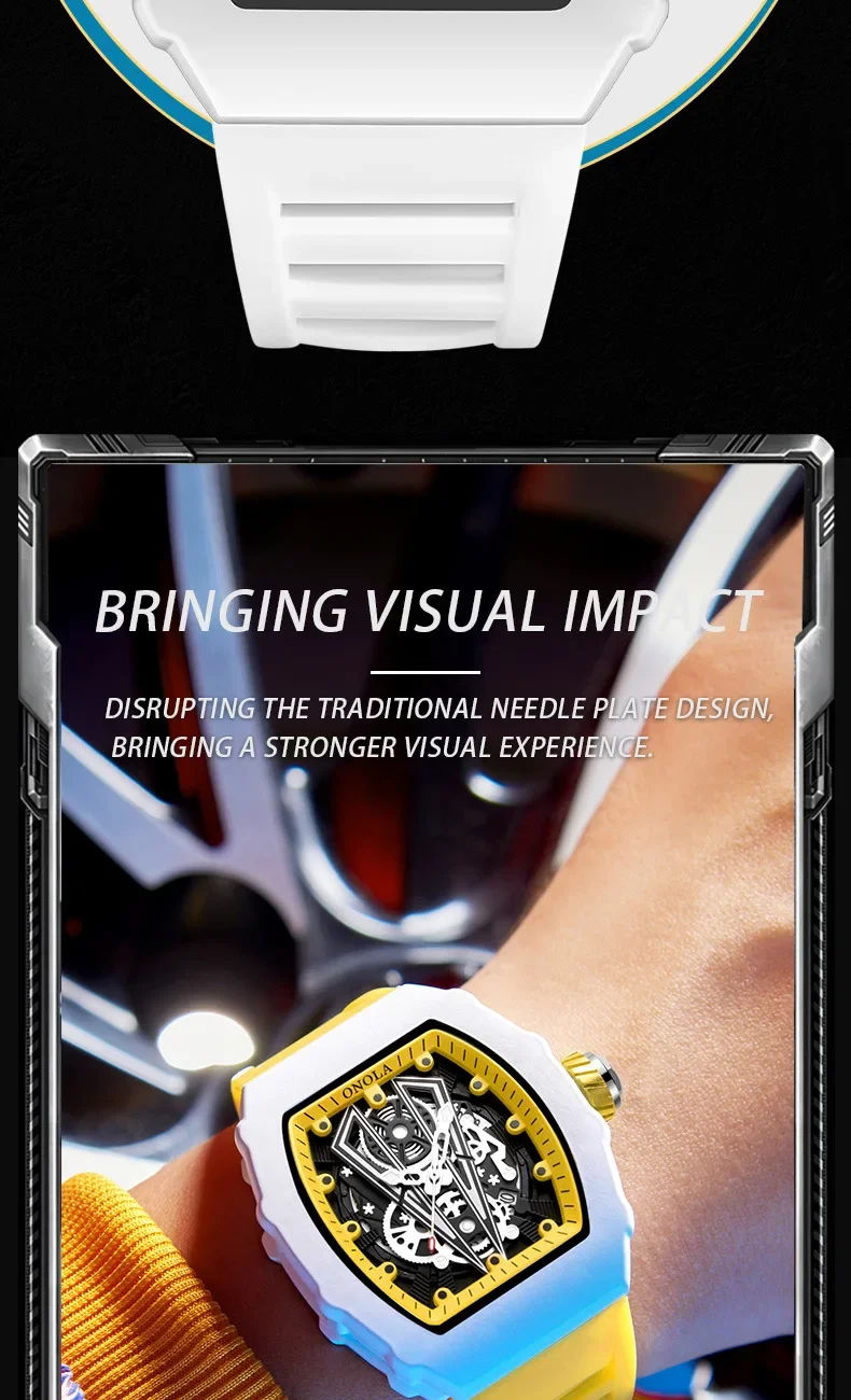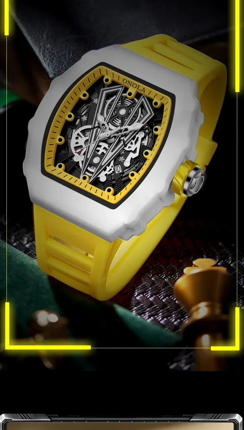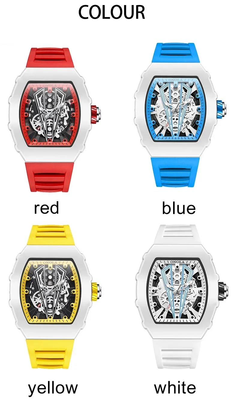 Gift Box Watches for Man ONOLA 3826 Fashion White Quartz Wristwatches Luminous Calendar Waterproof Silicone Strap Man Watch